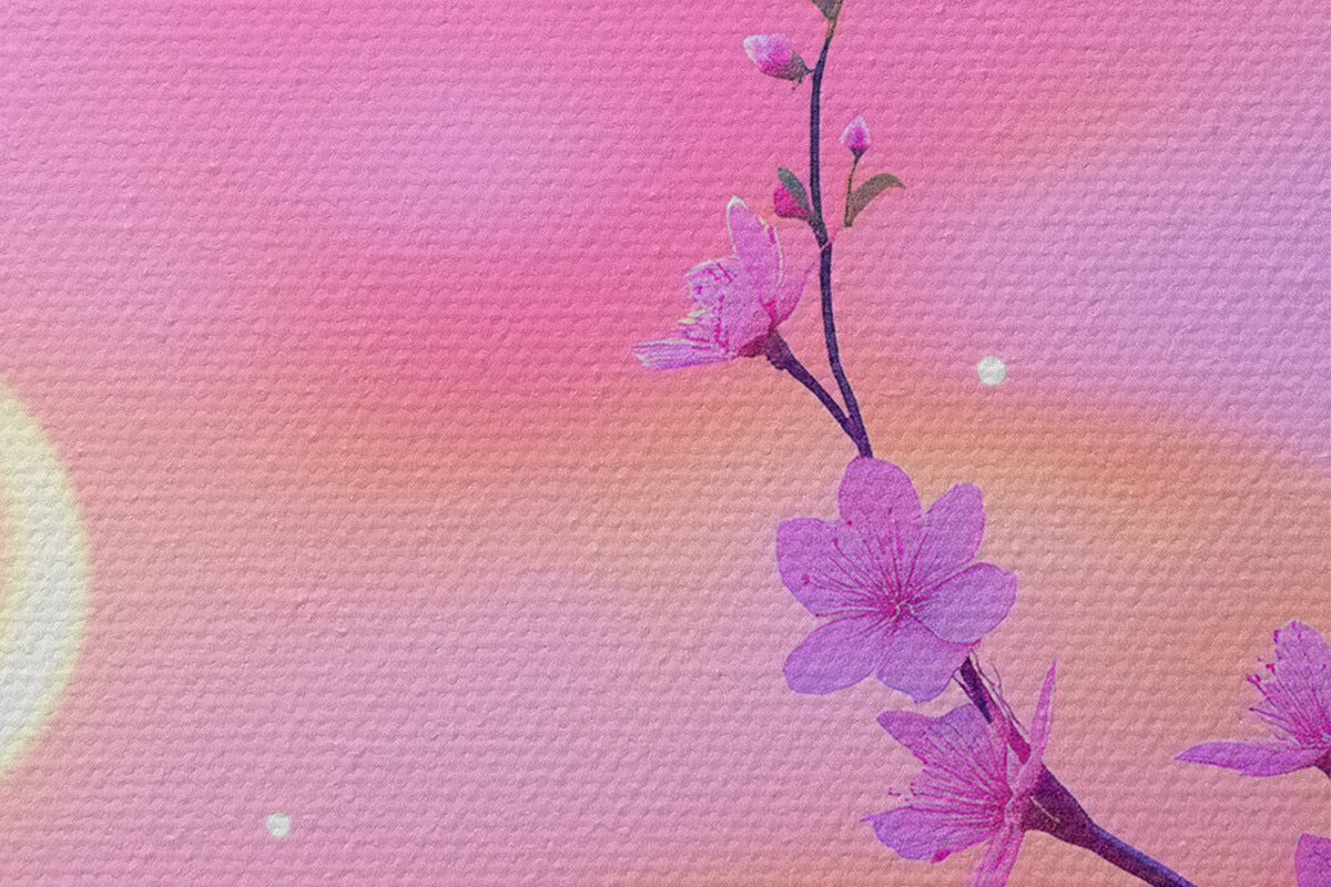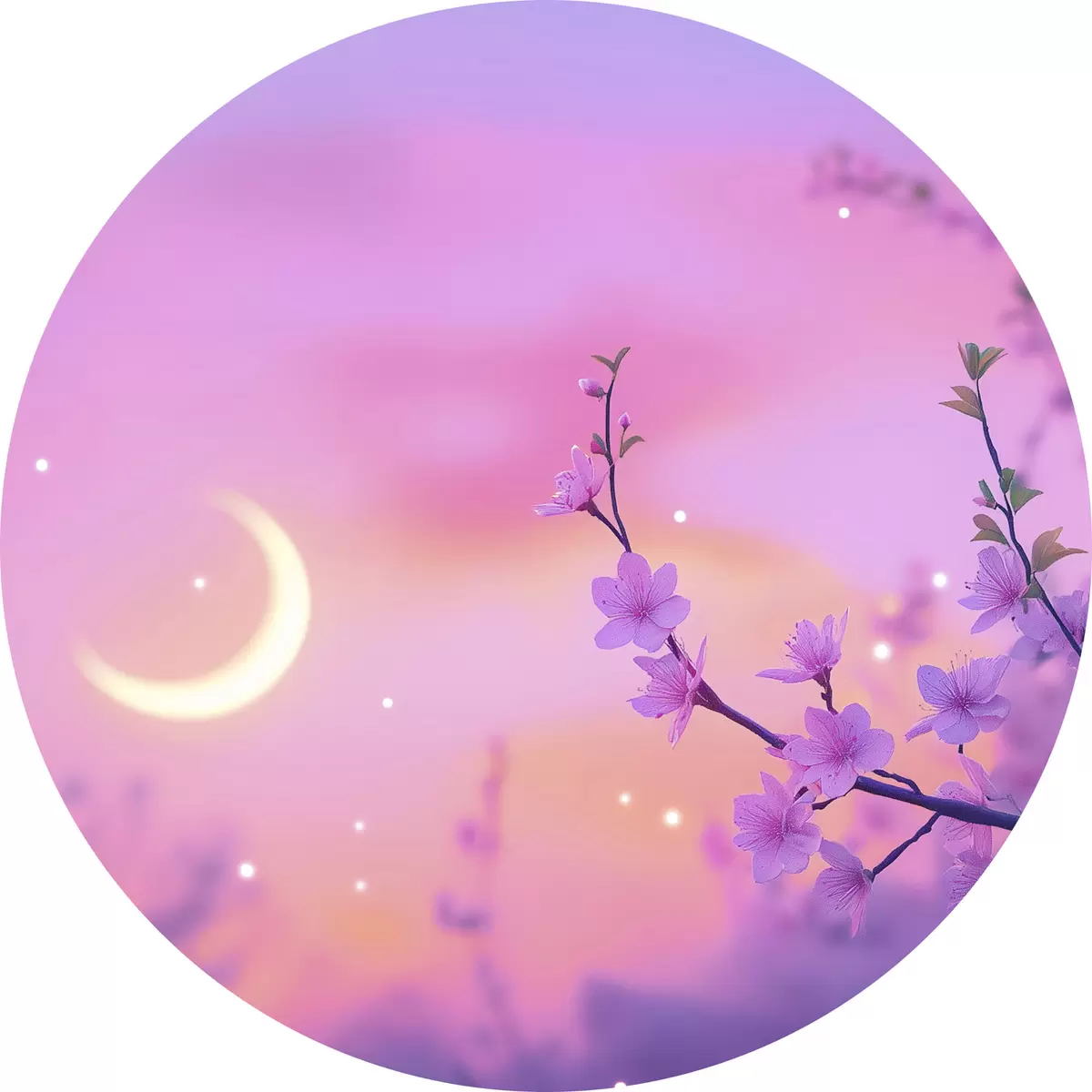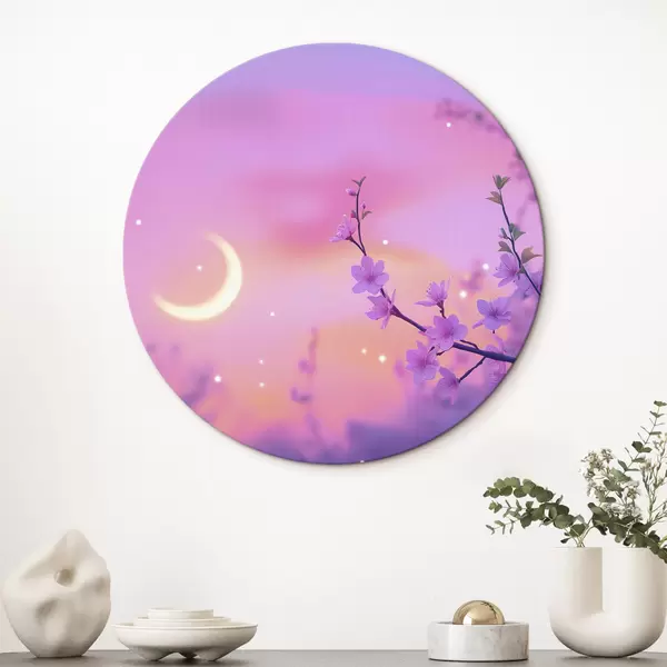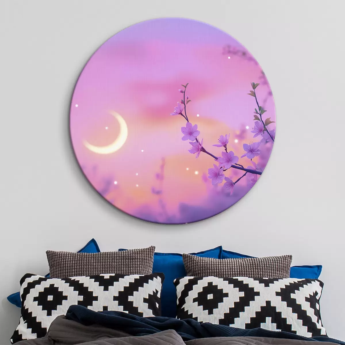 Picturi rotunde Cer violet cu lună și cireși Nr r44717