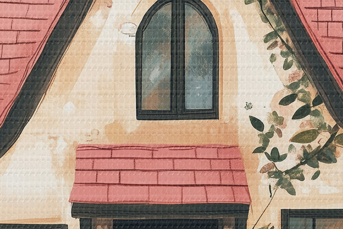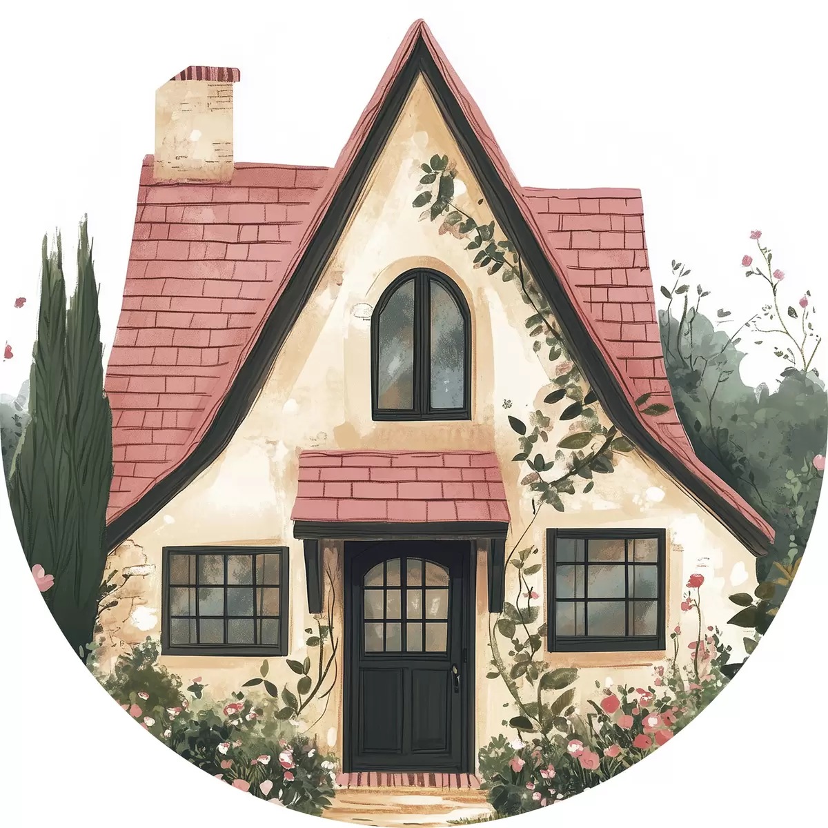 Picturi rotunde O casă de basm în pădure, trandafiri, stil pastel r44718