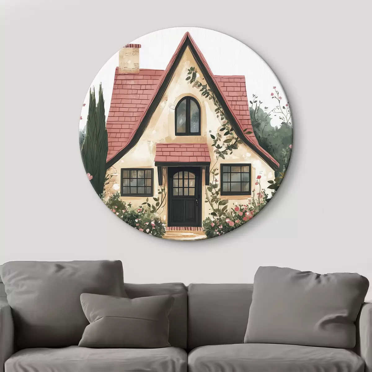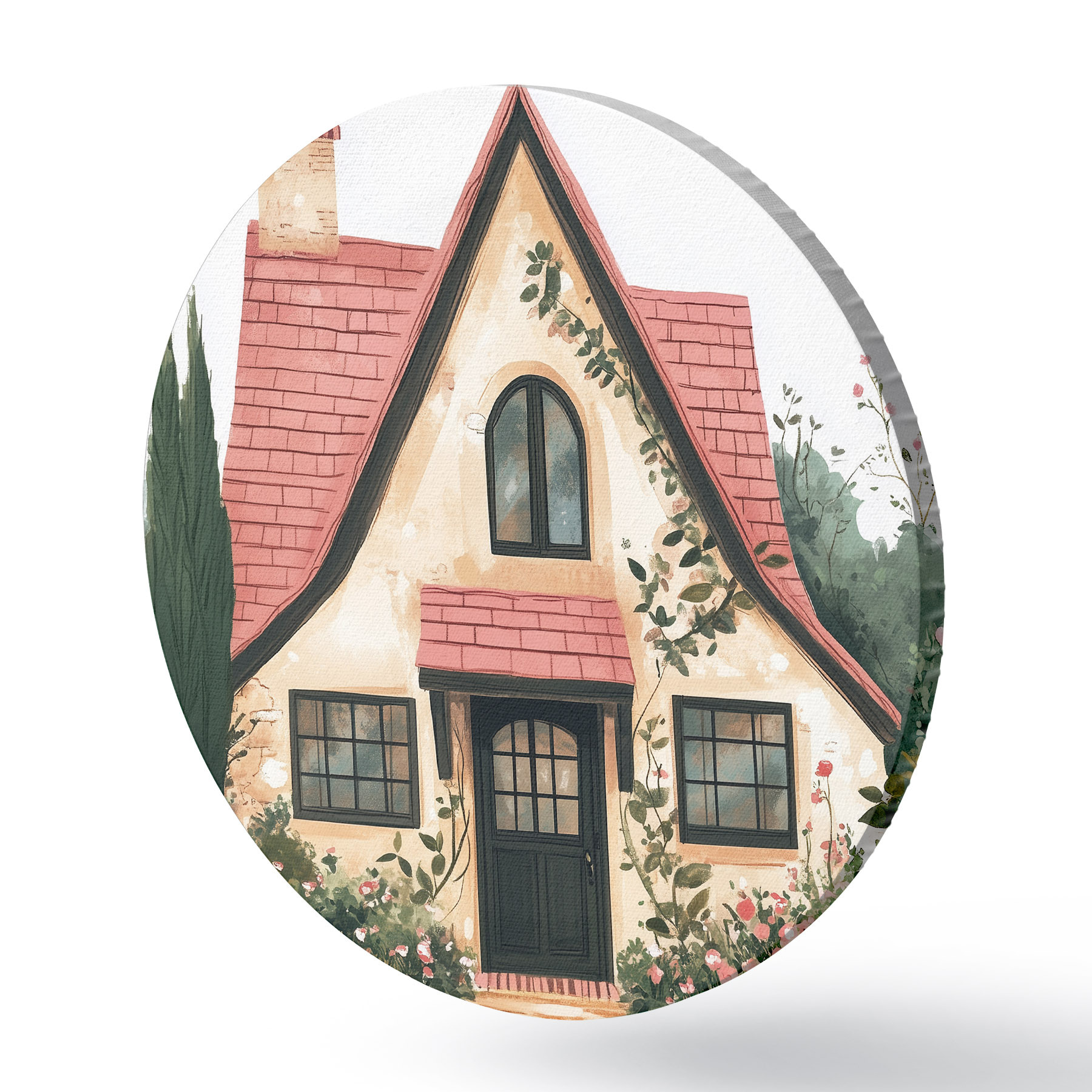 Picturi rotunde O casă de basm în pădure, trandafiri, stil pastel Nr r44718