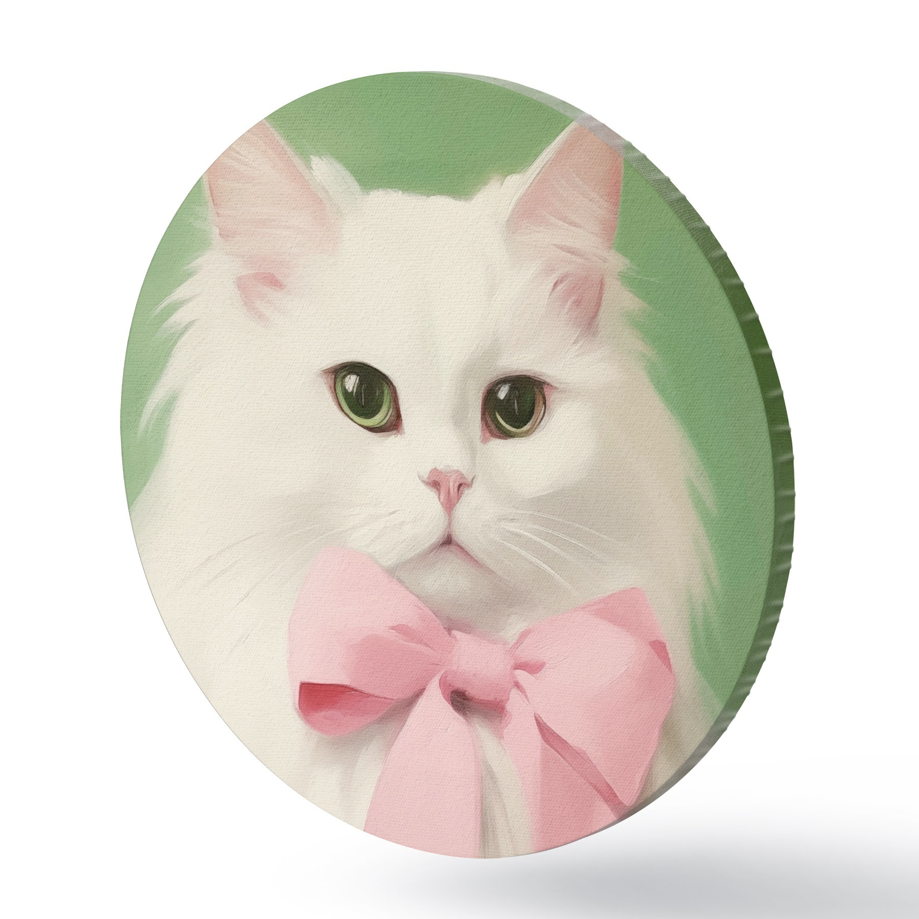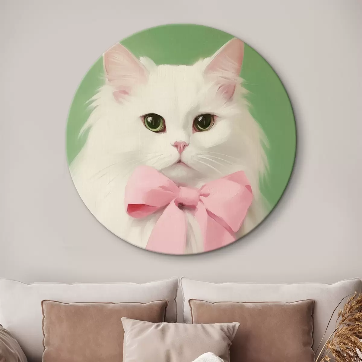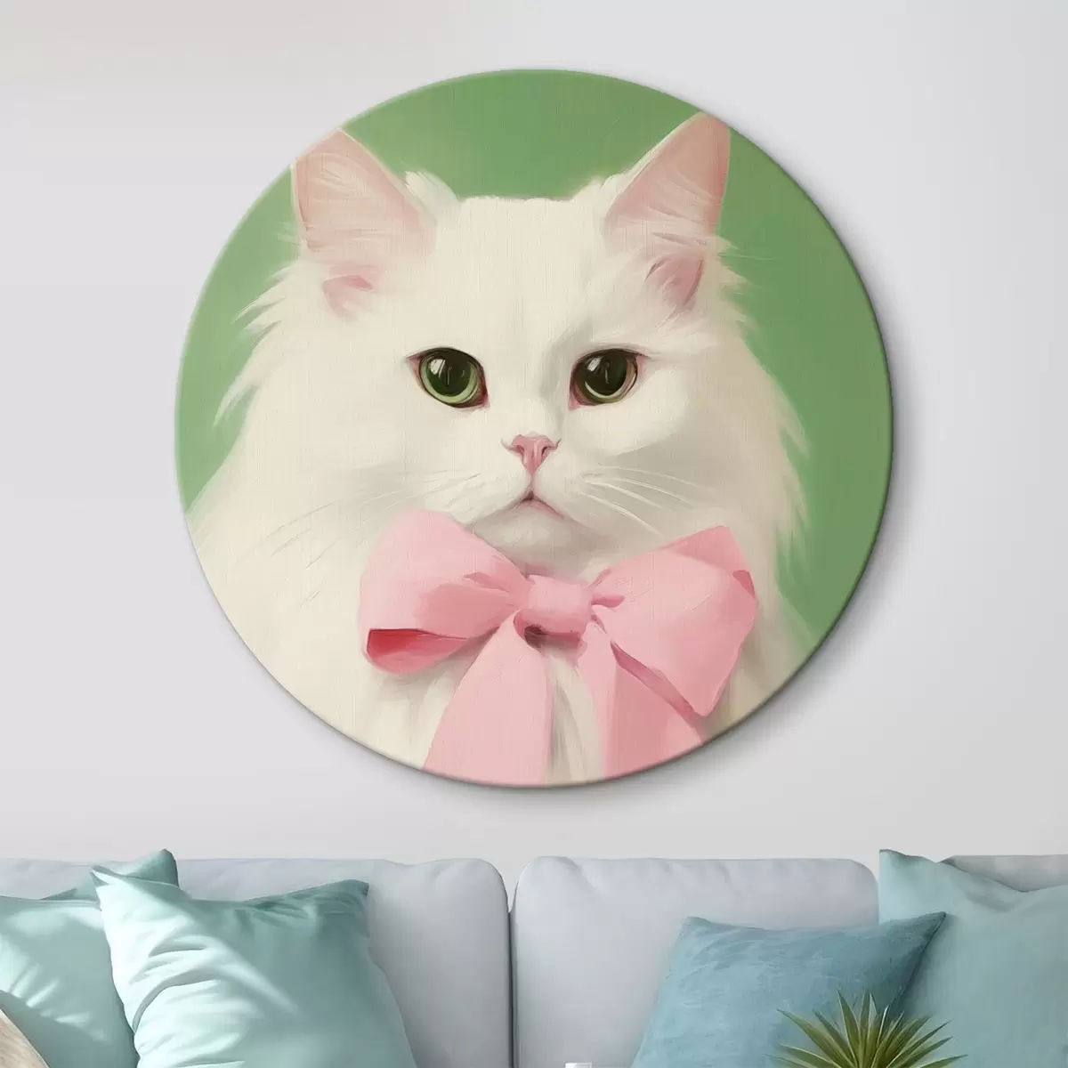Picturi rotunde Pisică albă cu arc roz Nr r44739