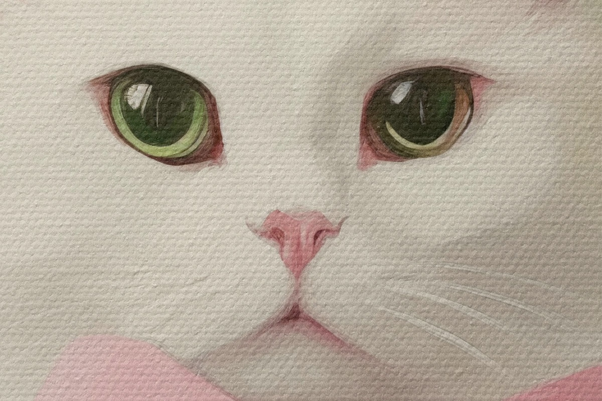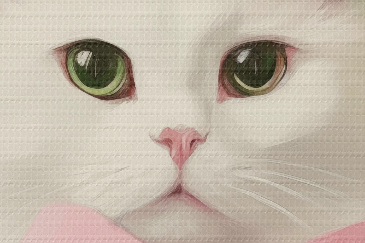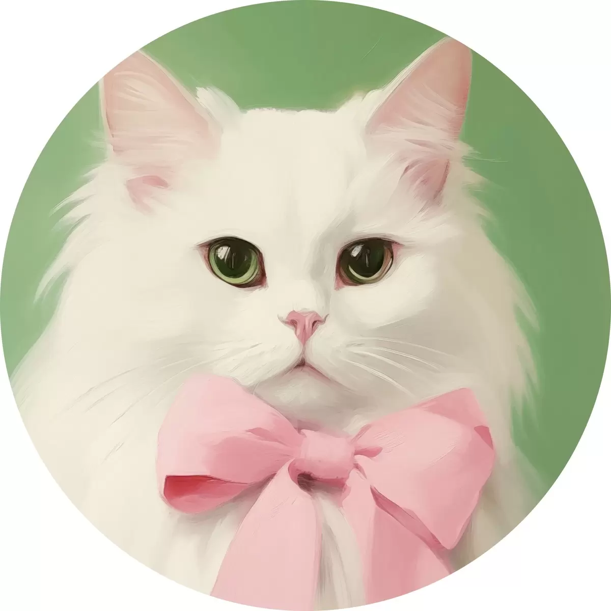Picturi rotunde Pisică albă cu arc roz Nr r44739