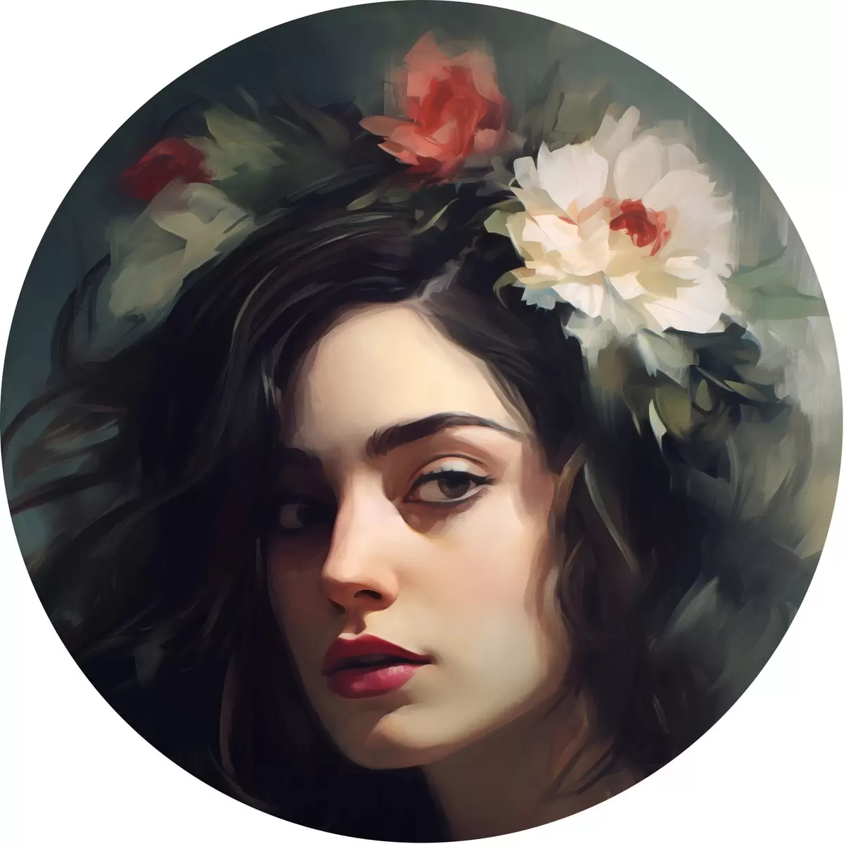 Picturi rotunde Femeie cu părul negru cu o coroană de flori Nr r44762