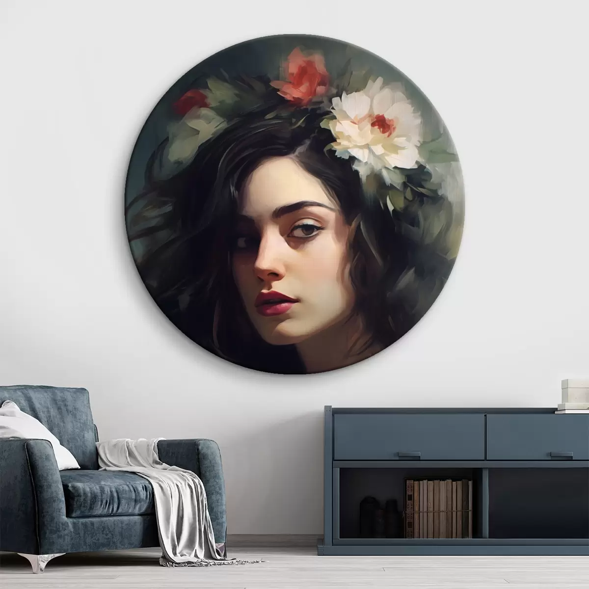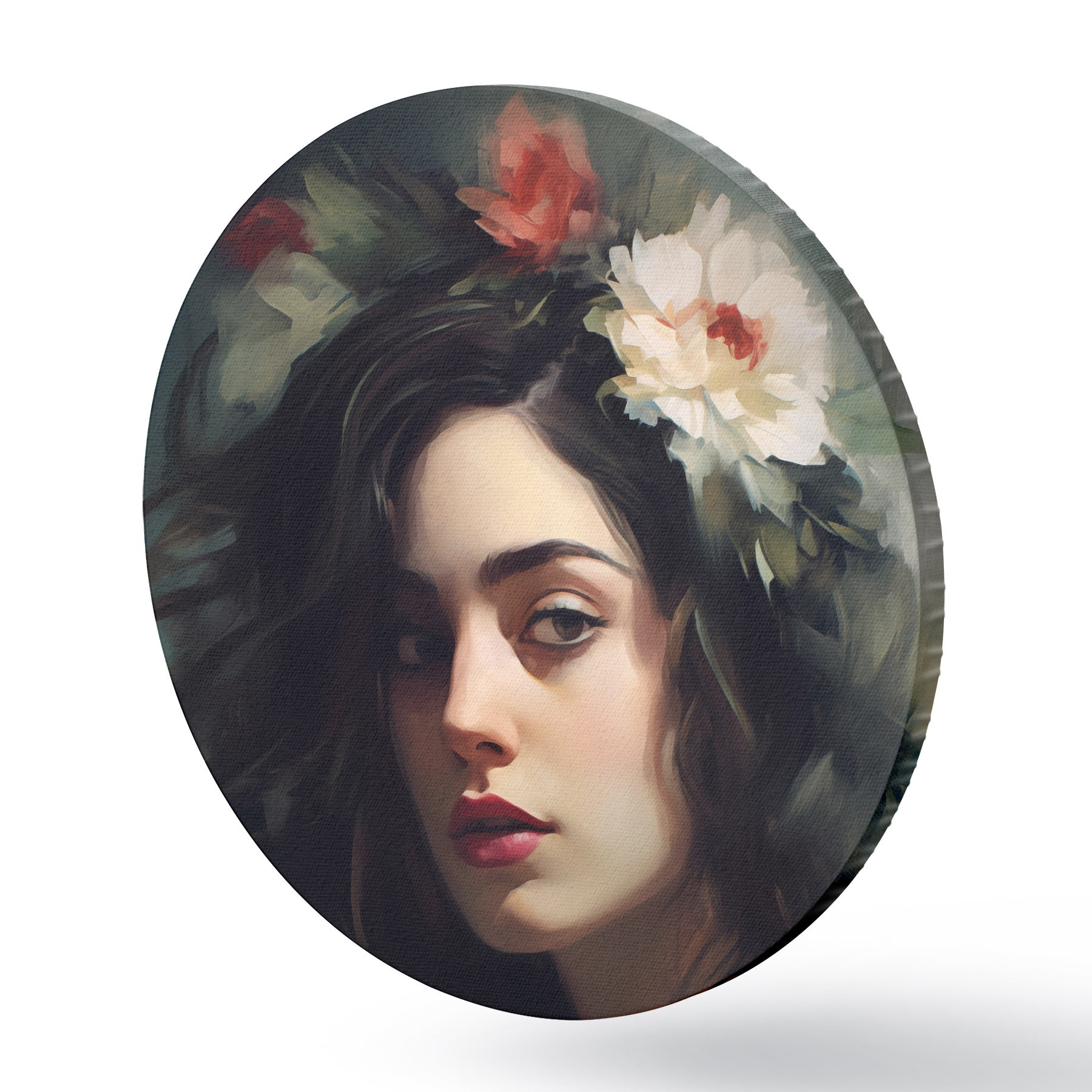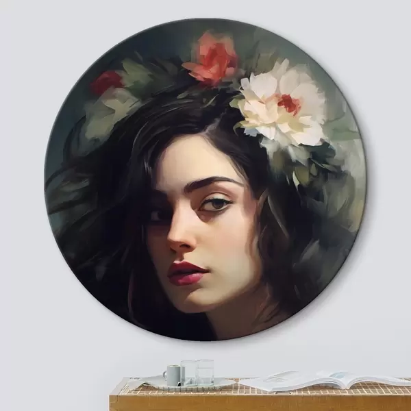 Picturi rotunde Femeie cu părul negru cu o coroană de flori r44762