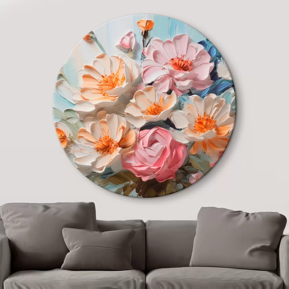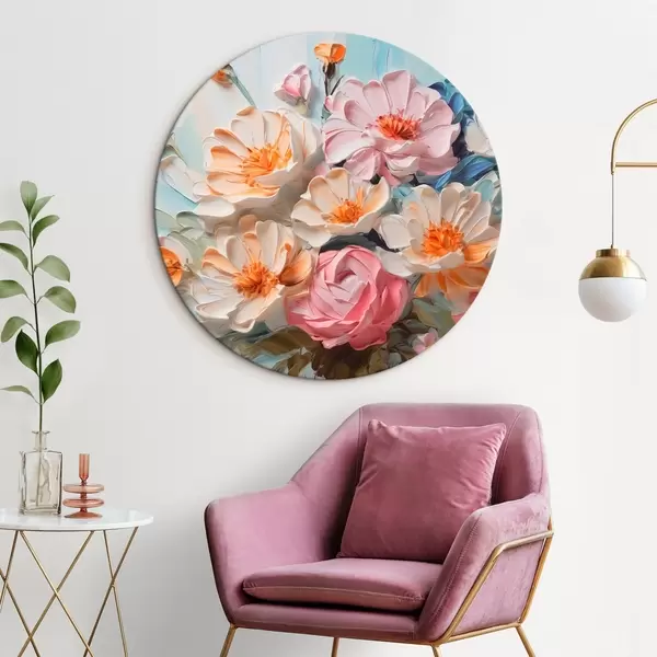 Picturi rotunde Flori luminoase imitație pictura Nr r44765