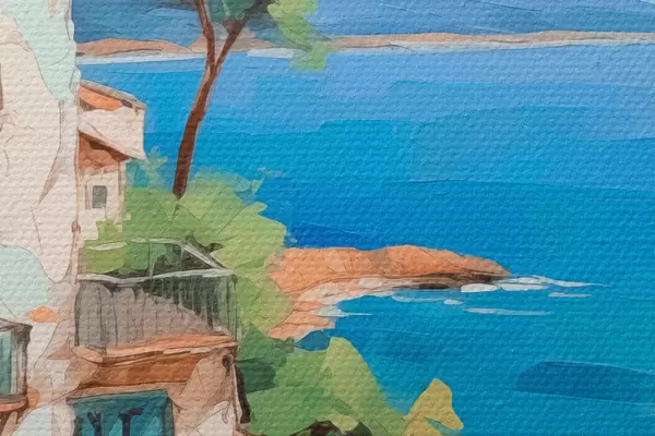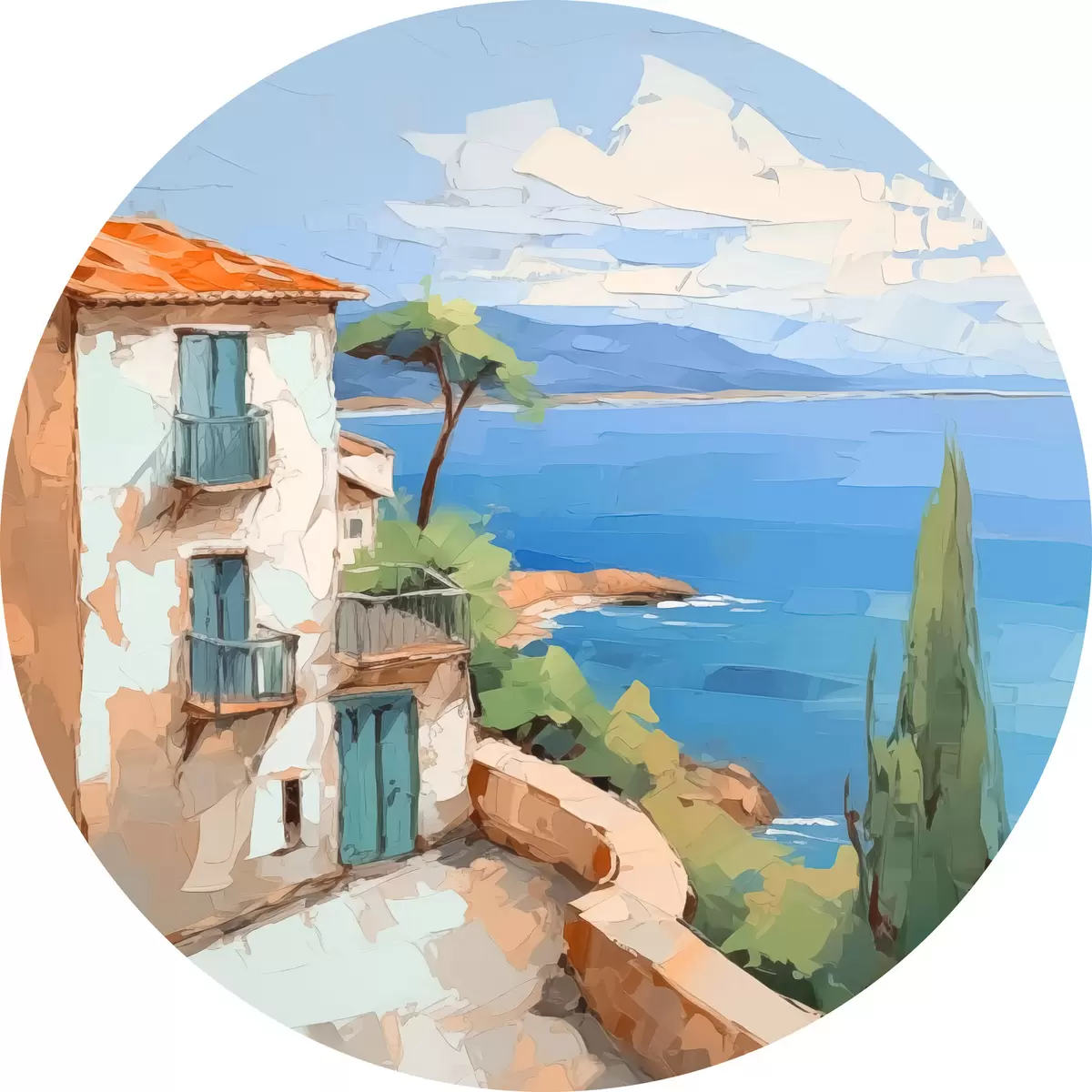 Picturi rotunde Casa de lângă mare imitație de pictură Nr r44767