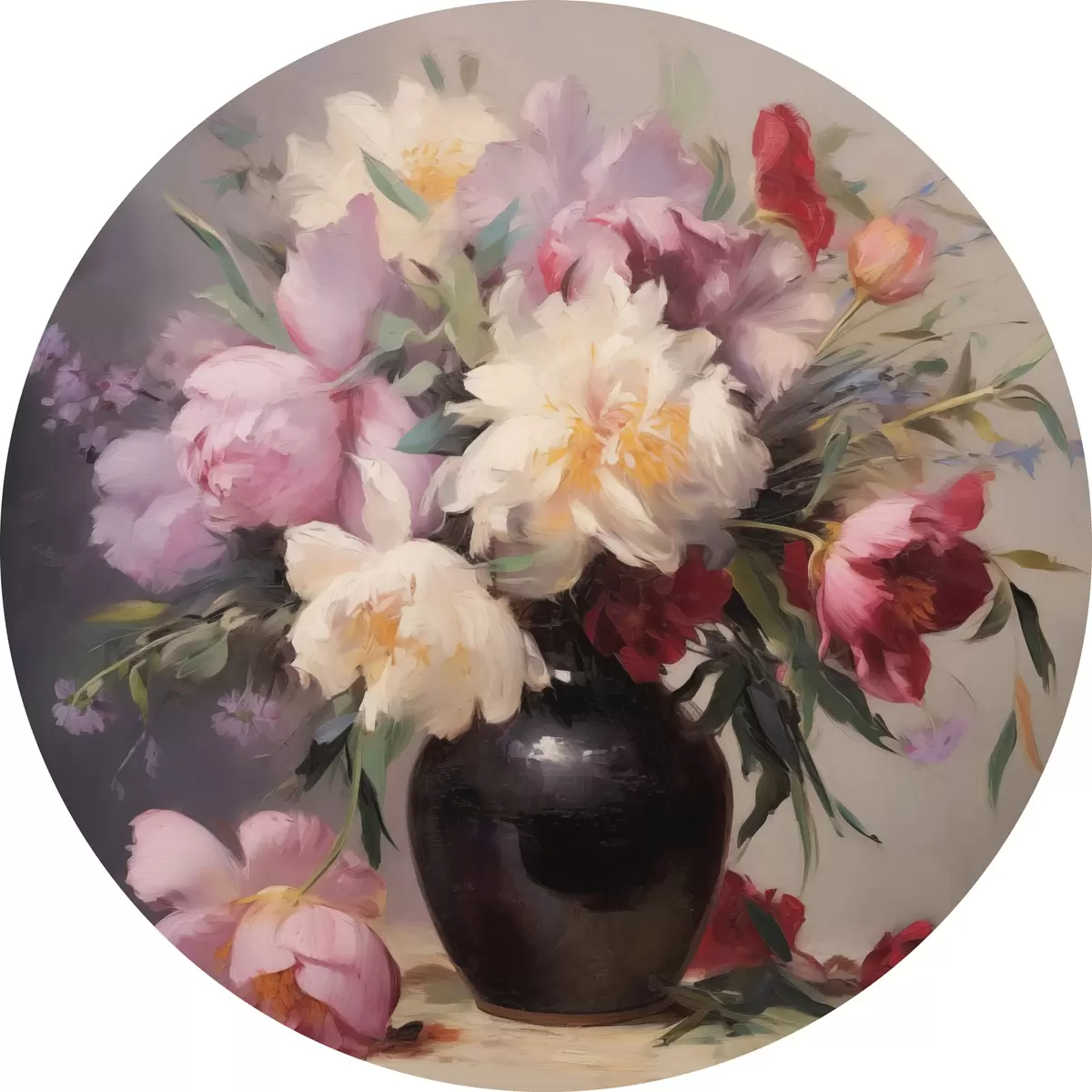 Picturi rotunde Buchet de bujori într-o vază închisă la culoare Nr r44769