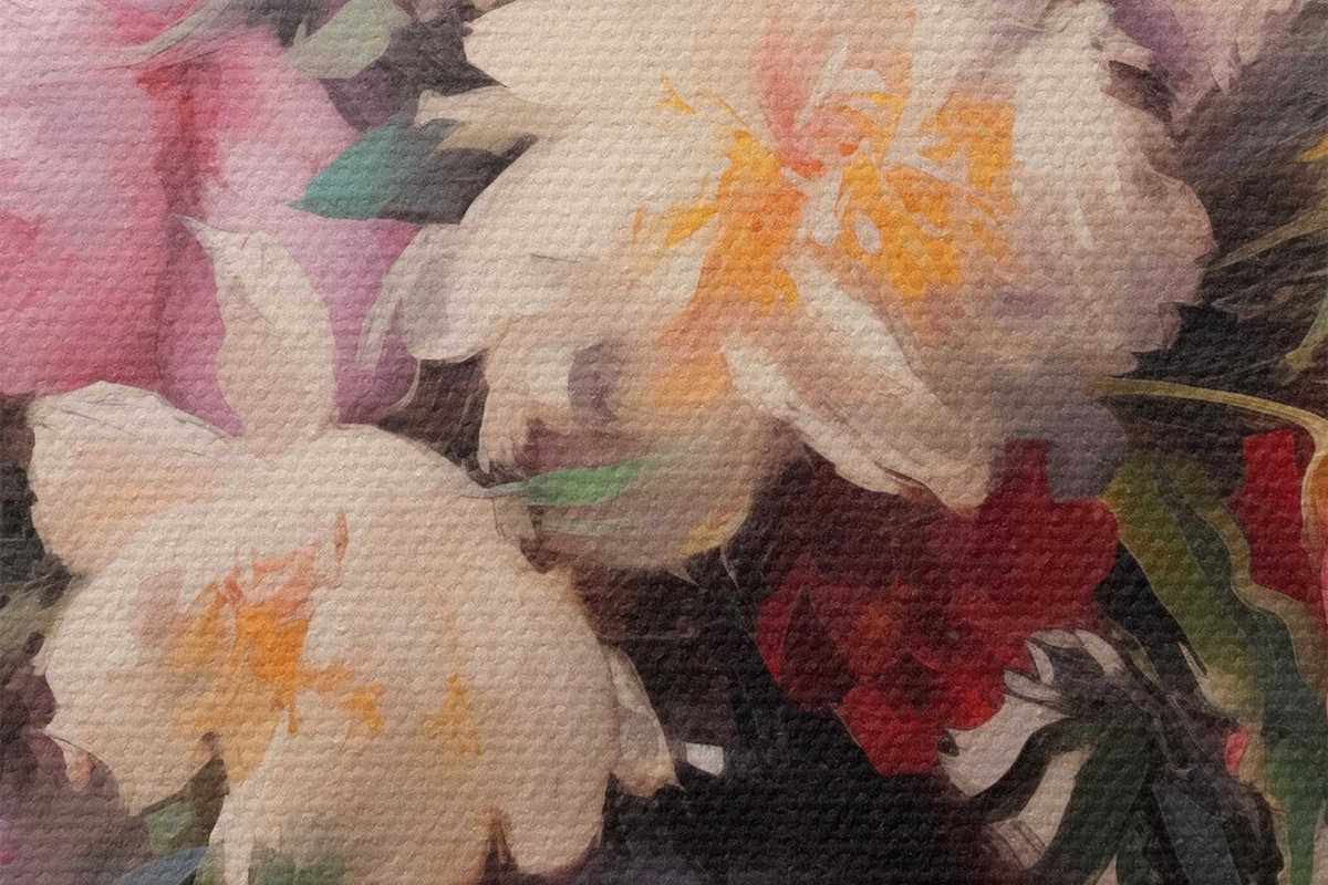 Trei tipuri de materiale sunt disponibile pentru comandă: Economic Canvas - un material dens și durabil pentru imprimarea digitală, identic cu pânza de pictor, suprafață impermeabilă, reproducere realistă a detaliilor, material cu granulație medie. Premium Canvas - textura seamănă cu cea a pânzei unui pictor (fire mici împletite). Reproducere moale, detaliată a imaginii pe o suprafață mată. Eco-Premium - țesătură 100% bumbac de înaltă calitate. Datorită fibrelor naturale de bumbac, materialul este durabil și rezistent la uzură. Reproducere excelentă a culorilor și a detaliilor.