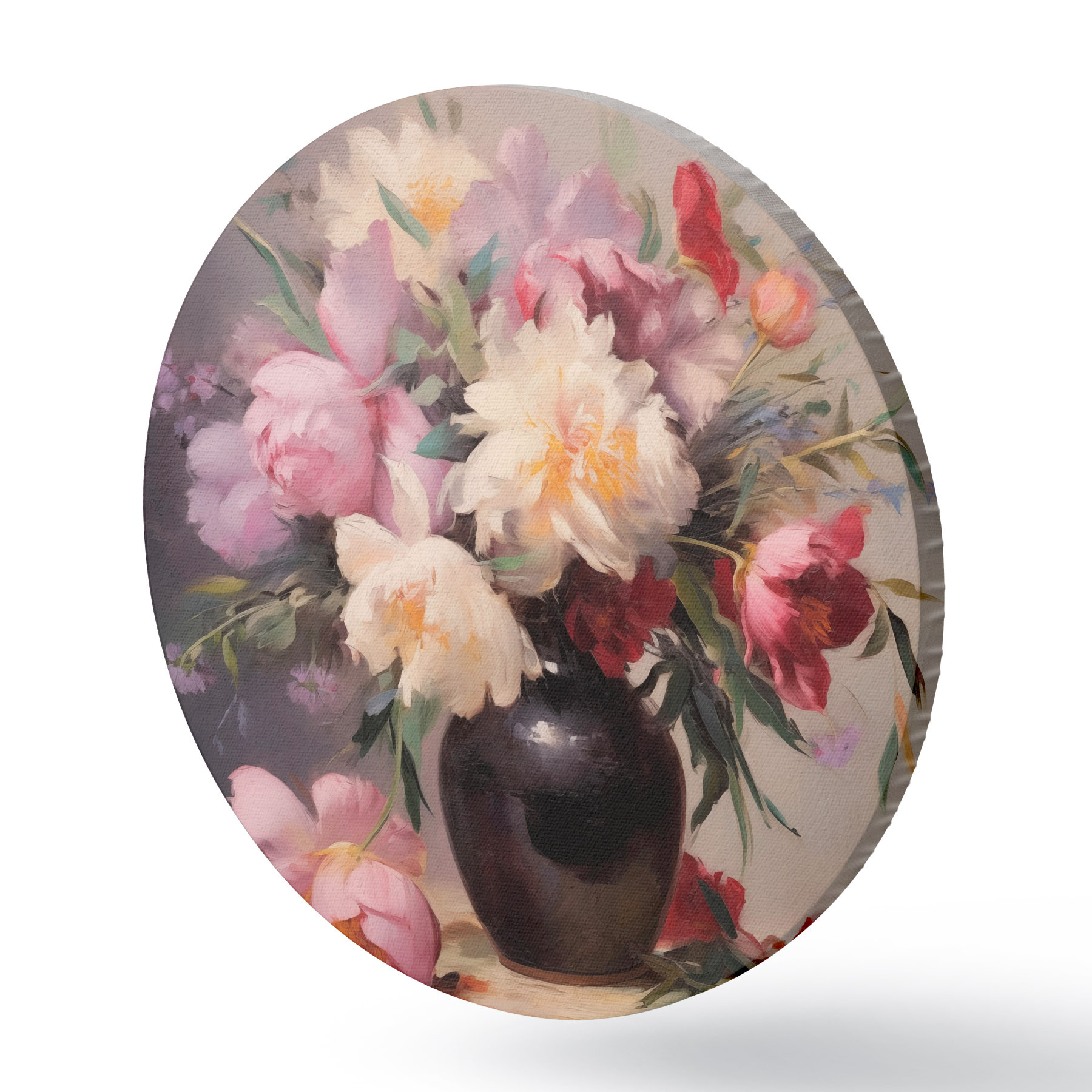 Picturi rotunde Buchet de bujori într-o vază închisă la culoare r44769