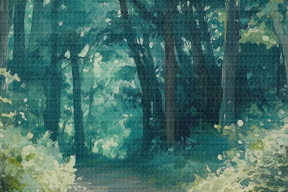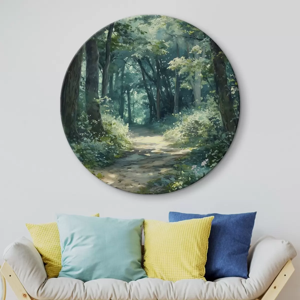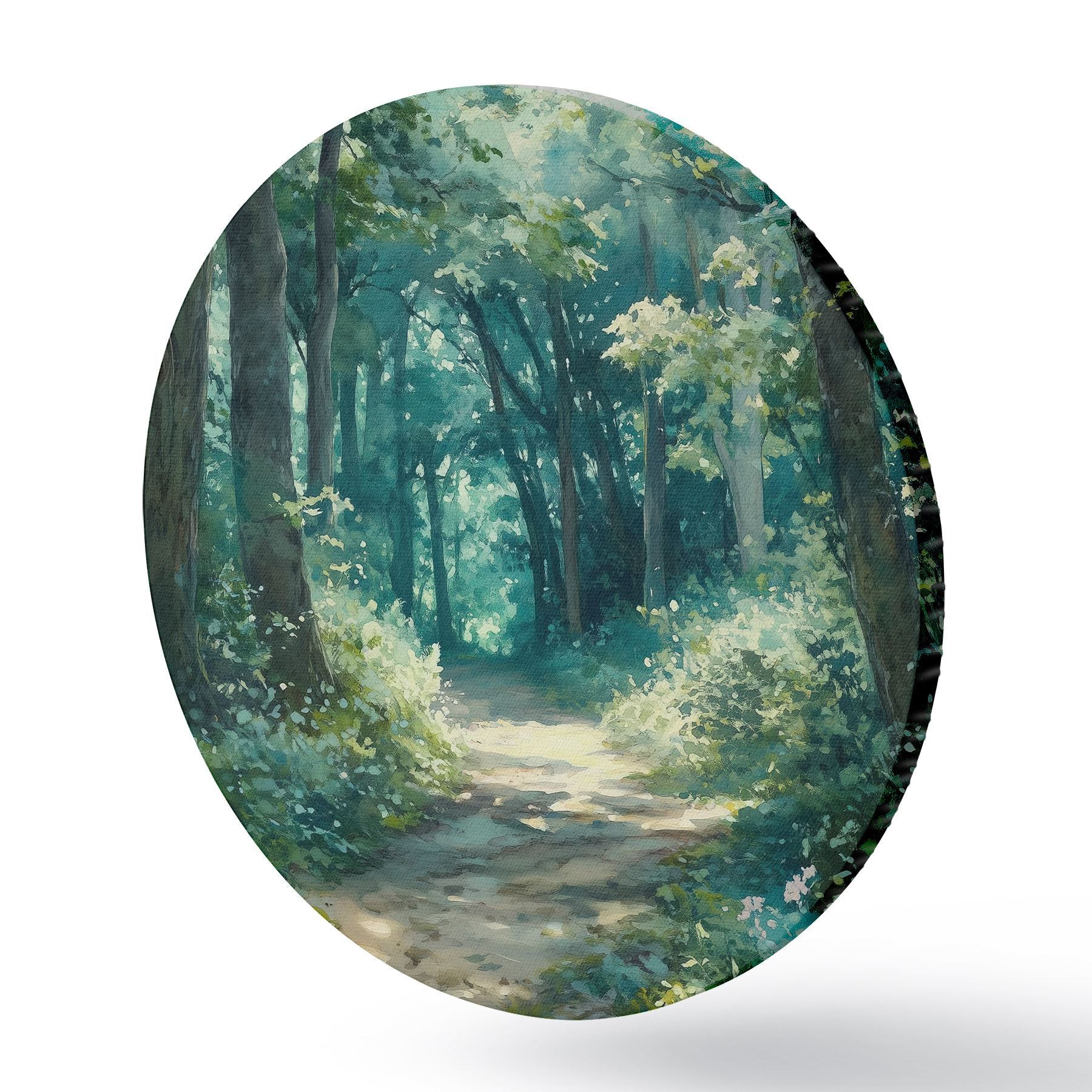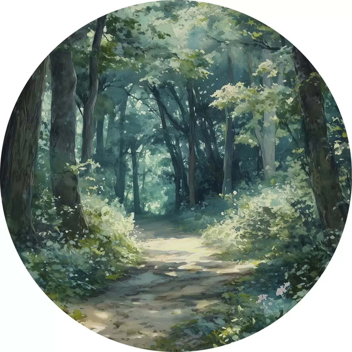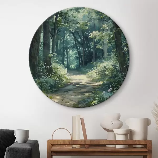 Picturi rotunde Pădure verde cu copaci și lumina soarelui Nr r44784