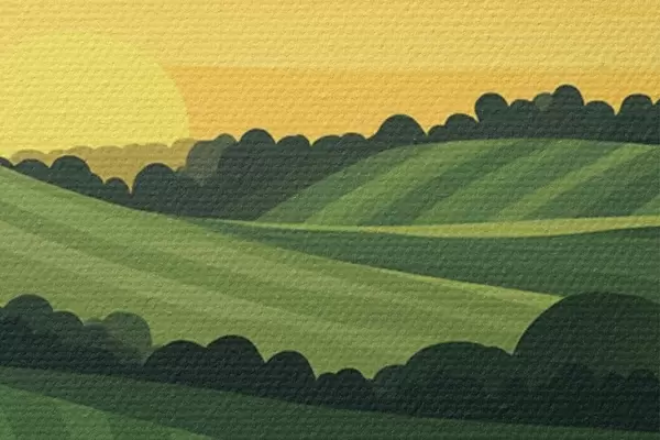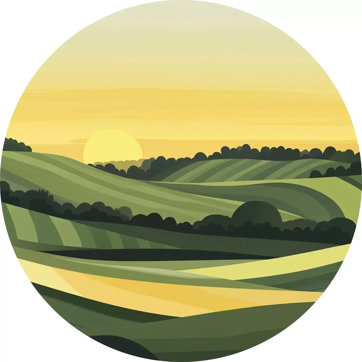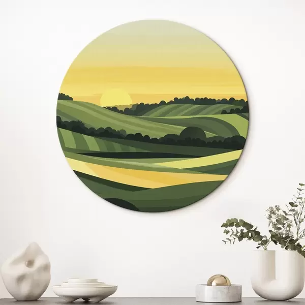 Picturi rotunde Peisaje abstracte cu dealuri și apus de soare r44785
