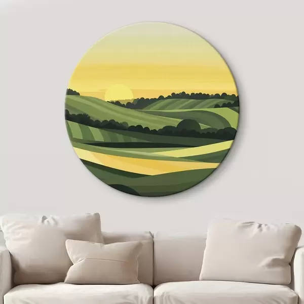 Picturi rotunde Peisaje abstracte cu dealuri și apus de soare Nr r44785