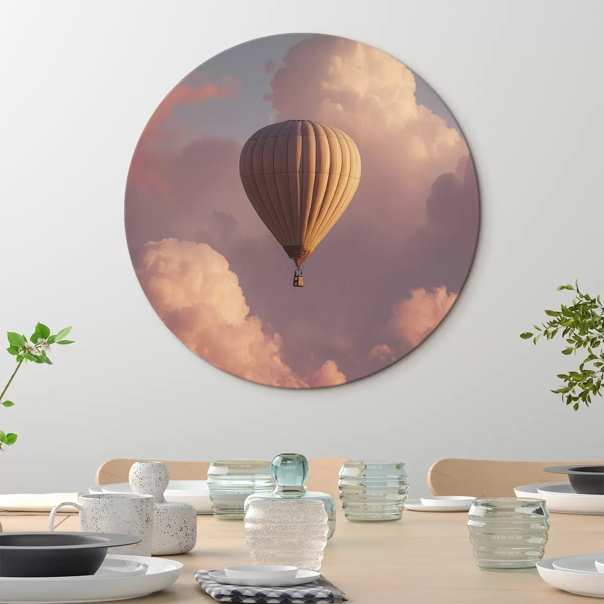 Picturi rotunde Balon de aer pe cerul de apus de soare cu nori Nr r44790