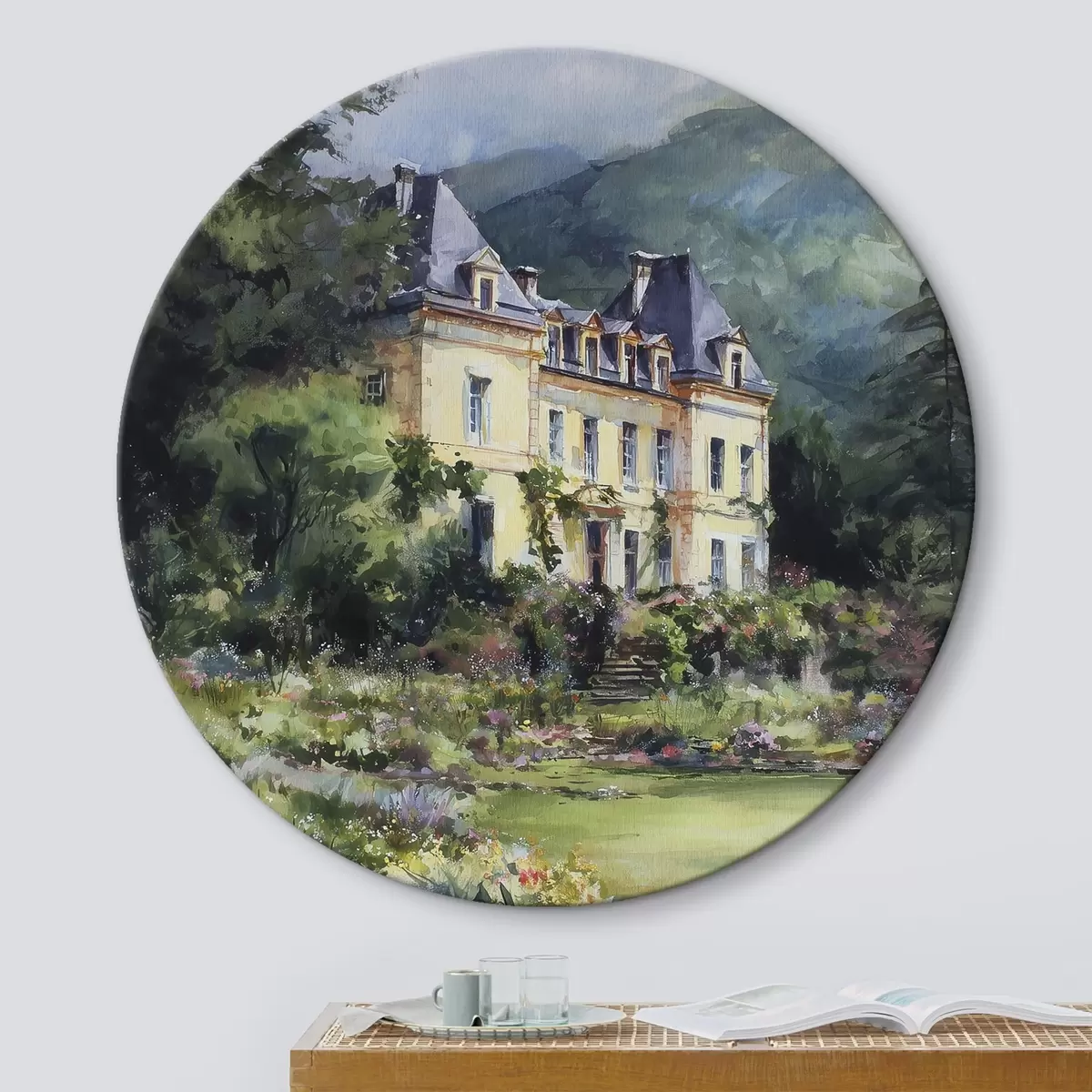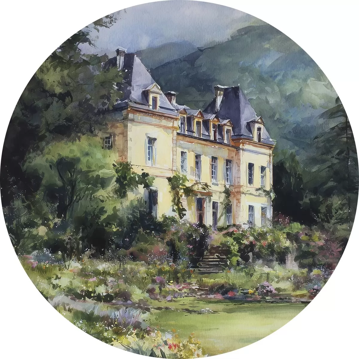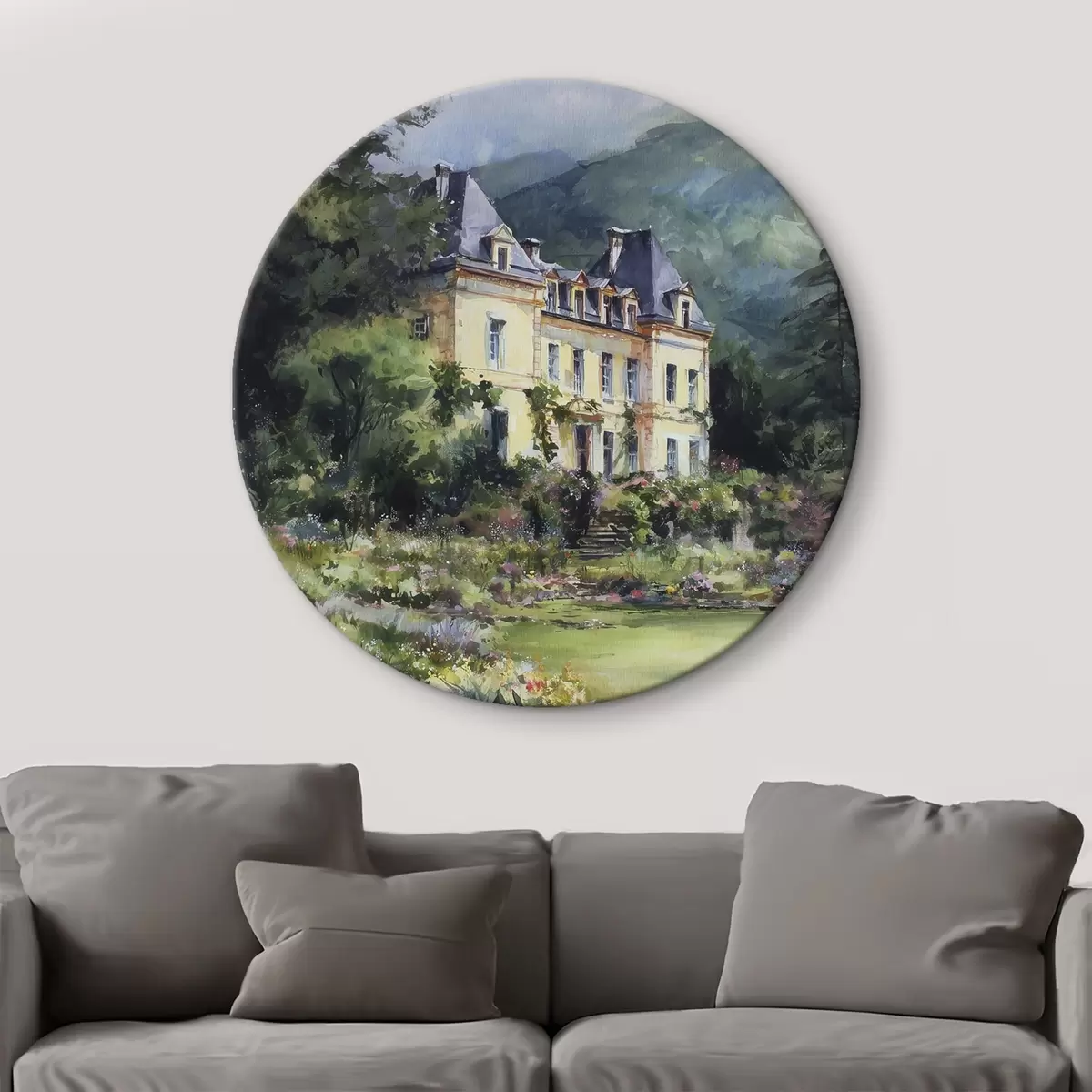 Picturi rotunde Chateau francez înconjurat de o grădină cu lavandă Nr r44797