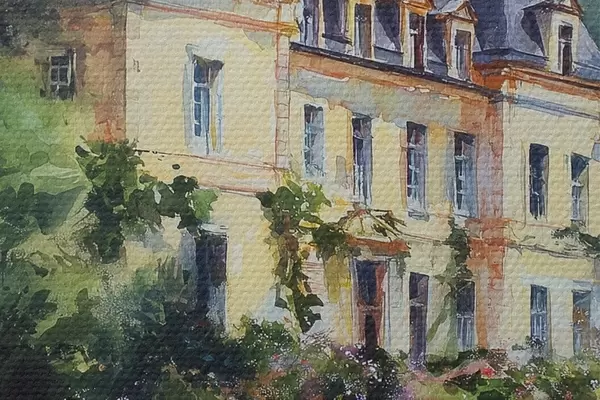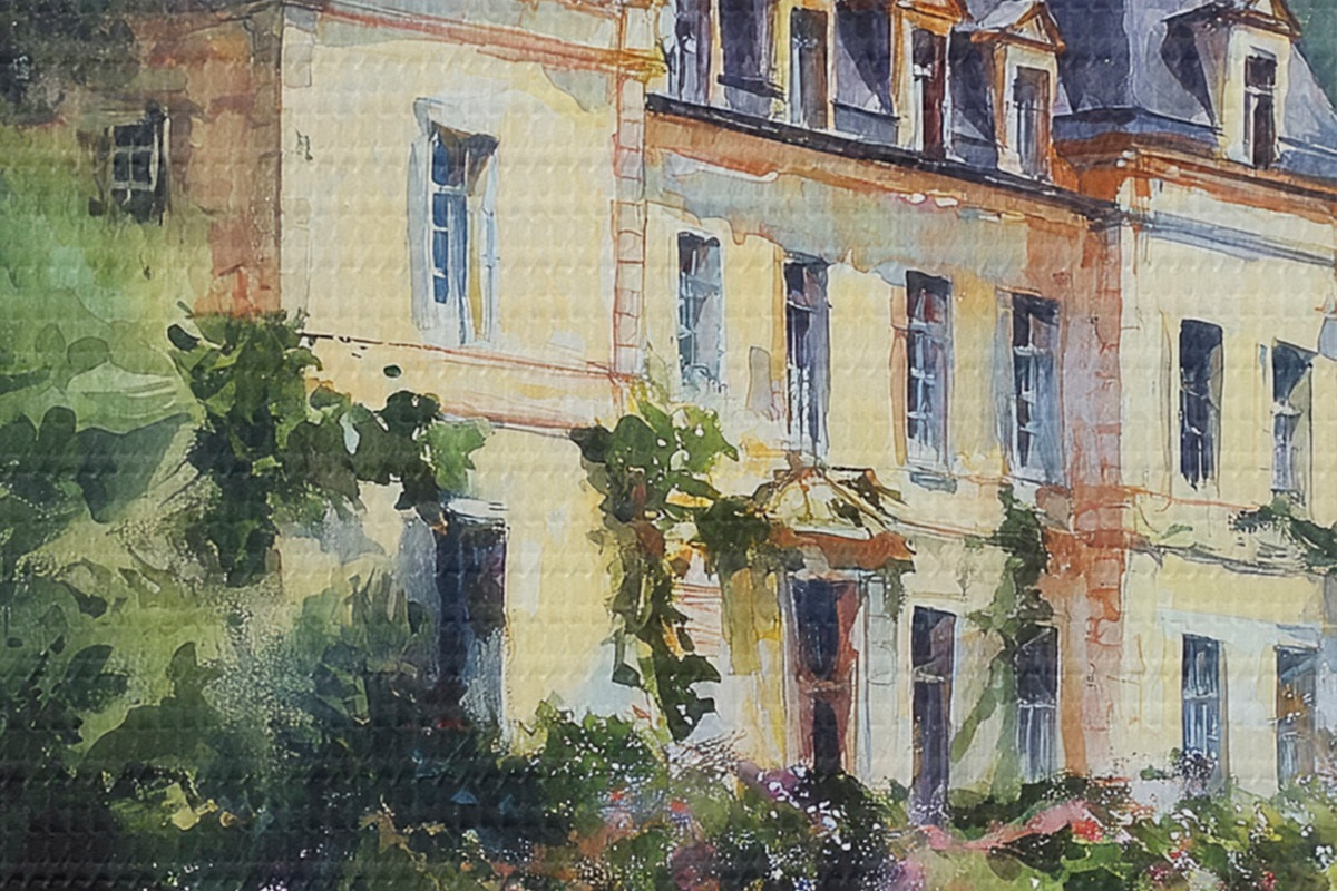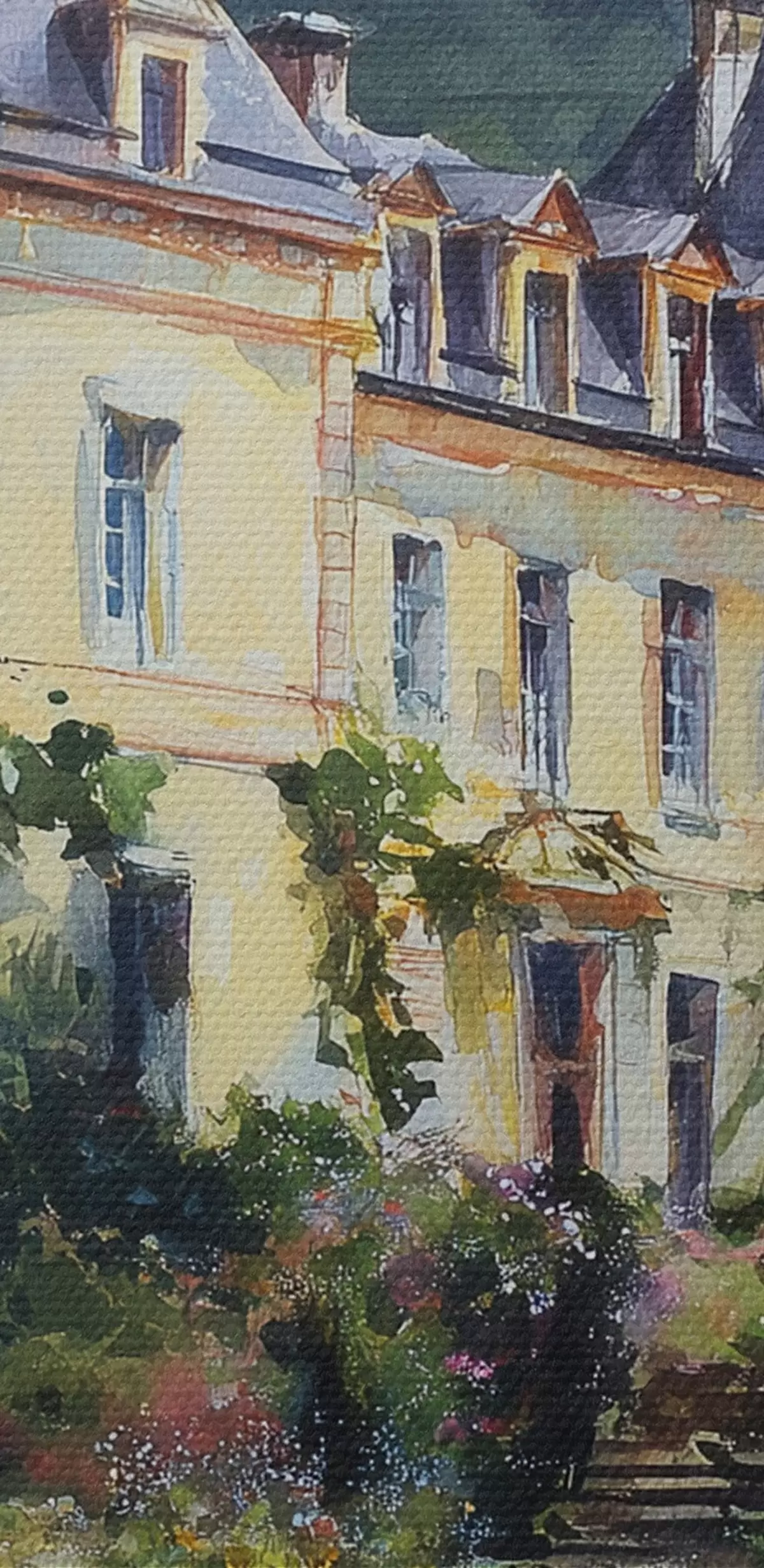 Picturi rotunde Chateau francez înconjurat de o grădină cu lavandă r44797