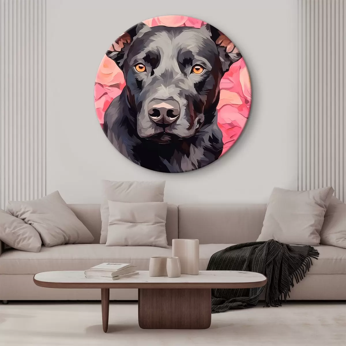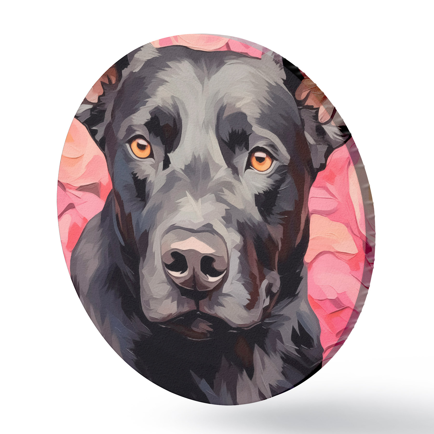 Picturi rotunde Câine negru pe fundal abstract trandafiri Nr r44817