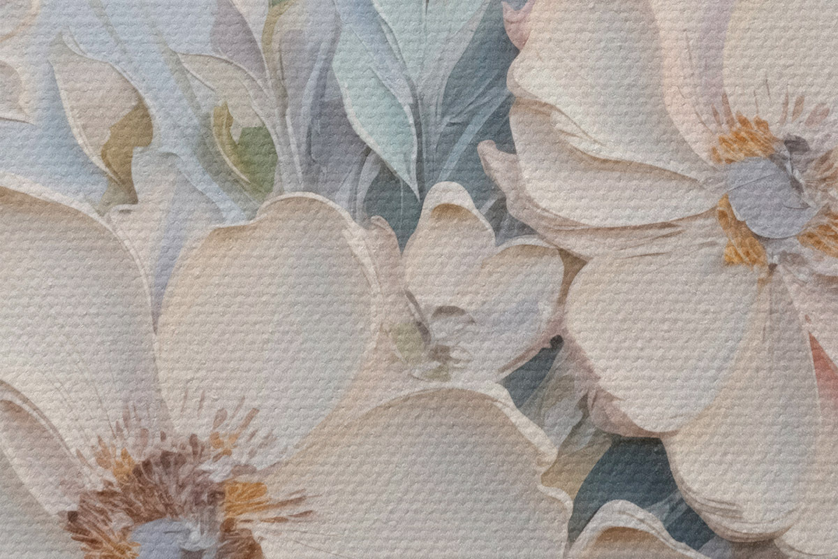 Trei tipuri de materiale sunt disponibile pentru comandă: Economic Canvas - un material dens și durabil pentru imprimarea digitală, identic cu pânza de pictor, suprafață impermeabilă, reproducere realistă a detaliilor, material cu granulație medie. Premium Canvas - textura seamănă cu cea a pânzei unui pictor (fire mici împletite). Reproducere moale, detaliată a imaginii pe o suprafață mată. Eco-Premium - țesătură 100% bumbac de înaltă calitate. Datorită fibrelor naturale de bumbac, materialul este durabil și rezistent la uzură. Reproducere excelentă a culorilor și a detaliilor.