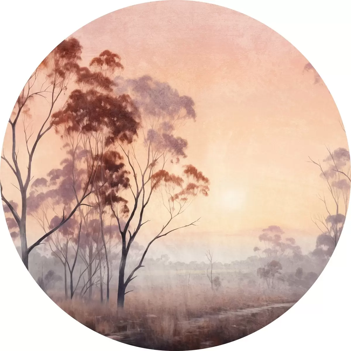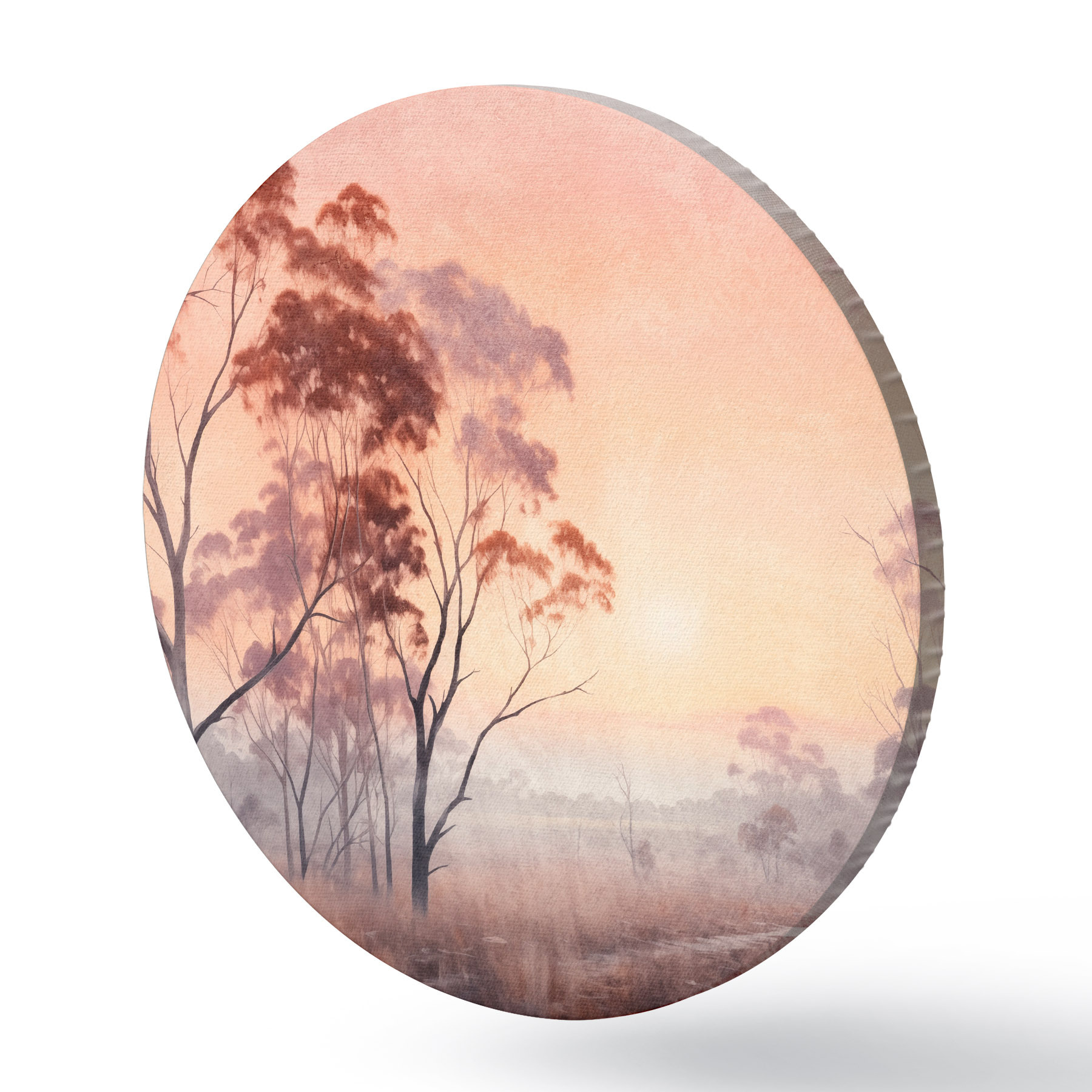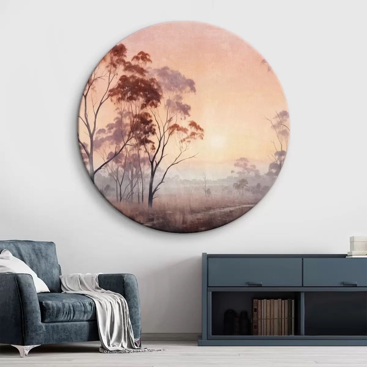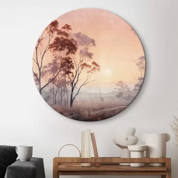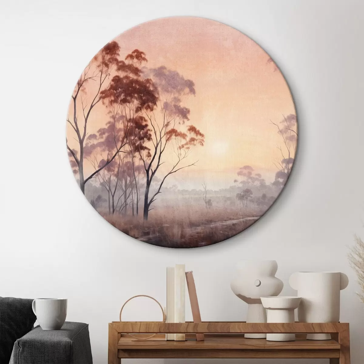 Picturi rotunde O pictură peisagistică a unui câmp cu iarbă înaltă și copaci, soarele este în fundal Nr r44854