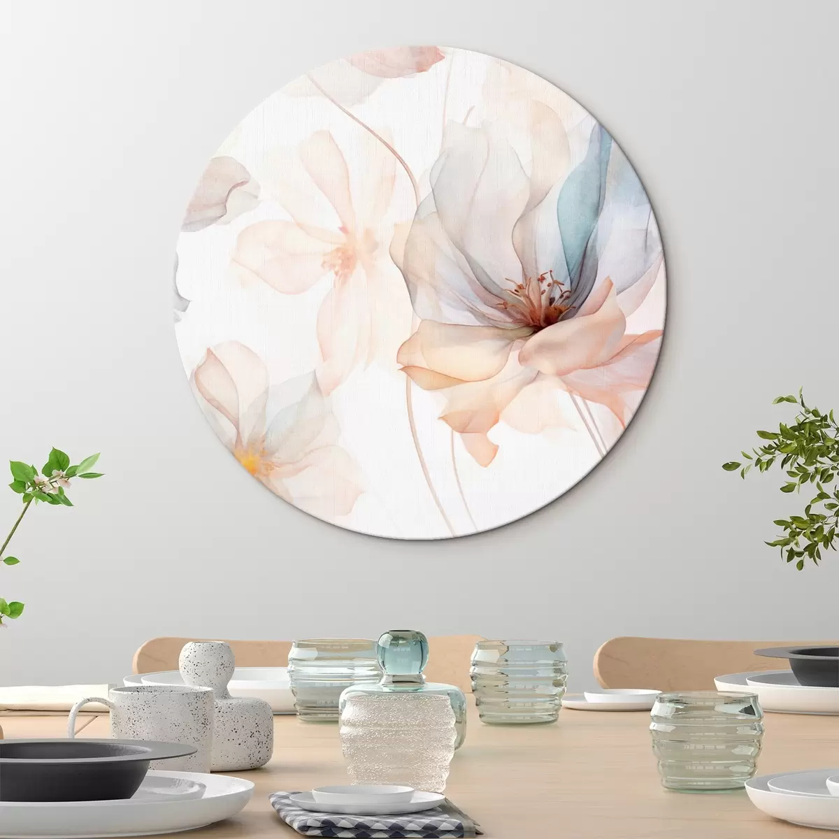 Picturi rotunde Flori translucide texturate în culori pastelate, petale delicate, linii delicate pe un fundal alb Nr r44855