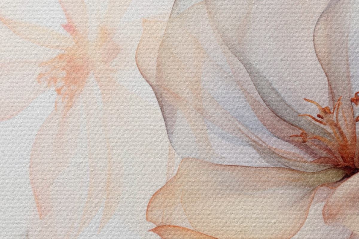 Picturi rotunde Flori translucide texturate în culori pastelate, petale delicate, linii delicate pe un fundal alb r44855