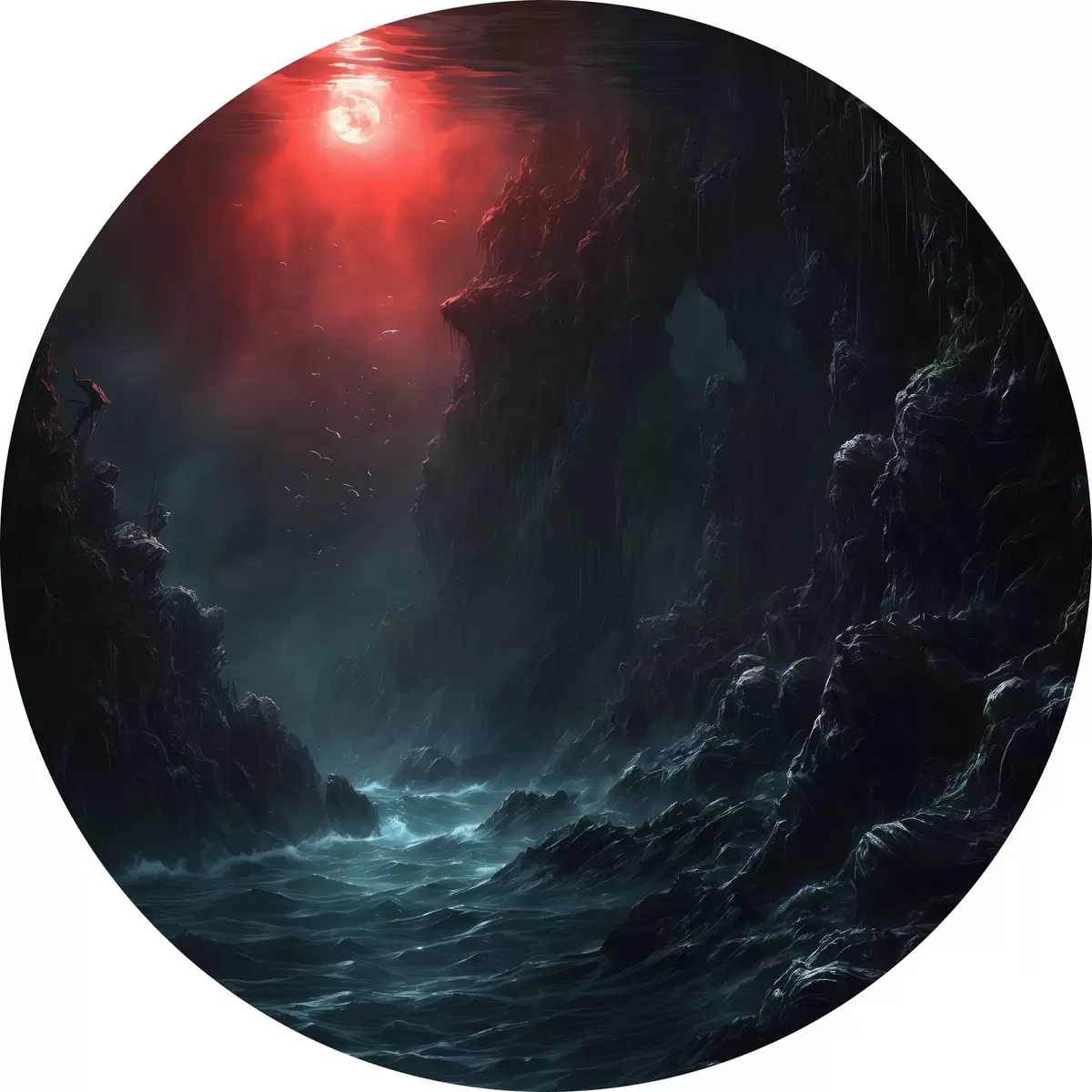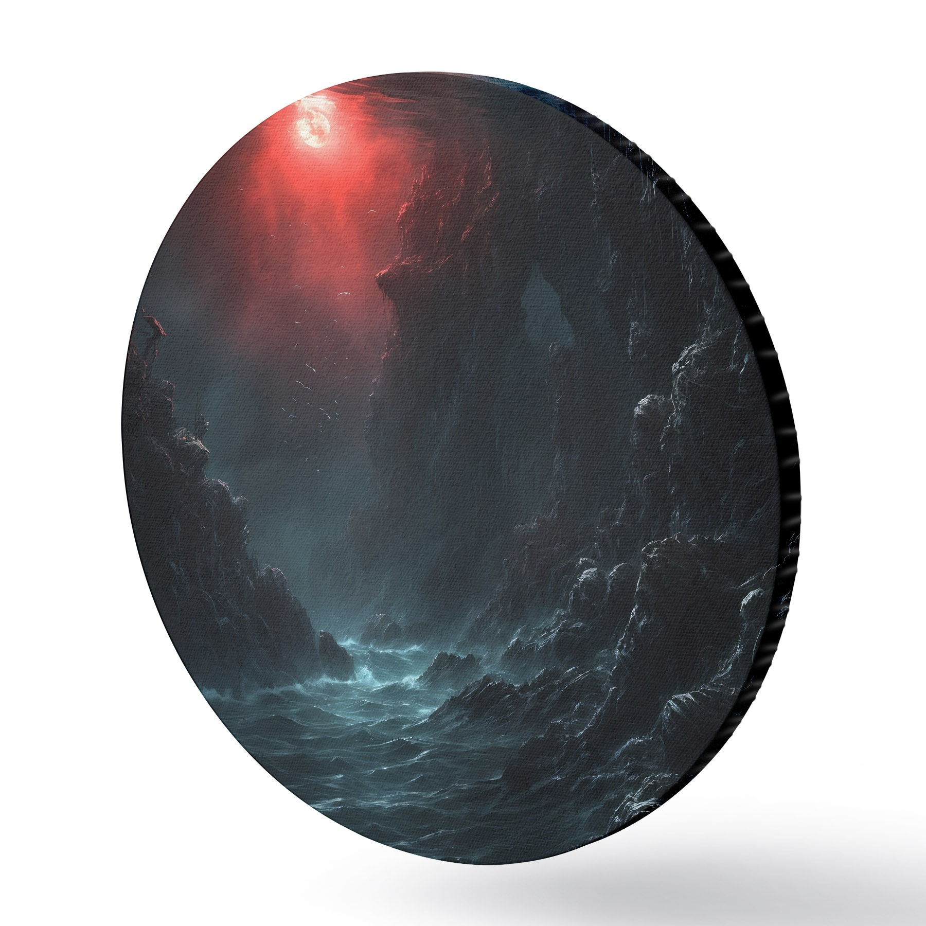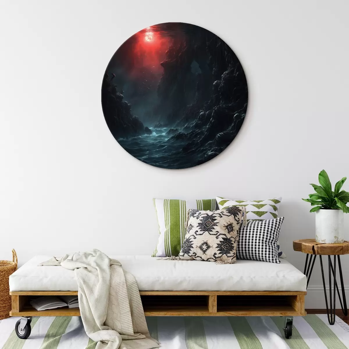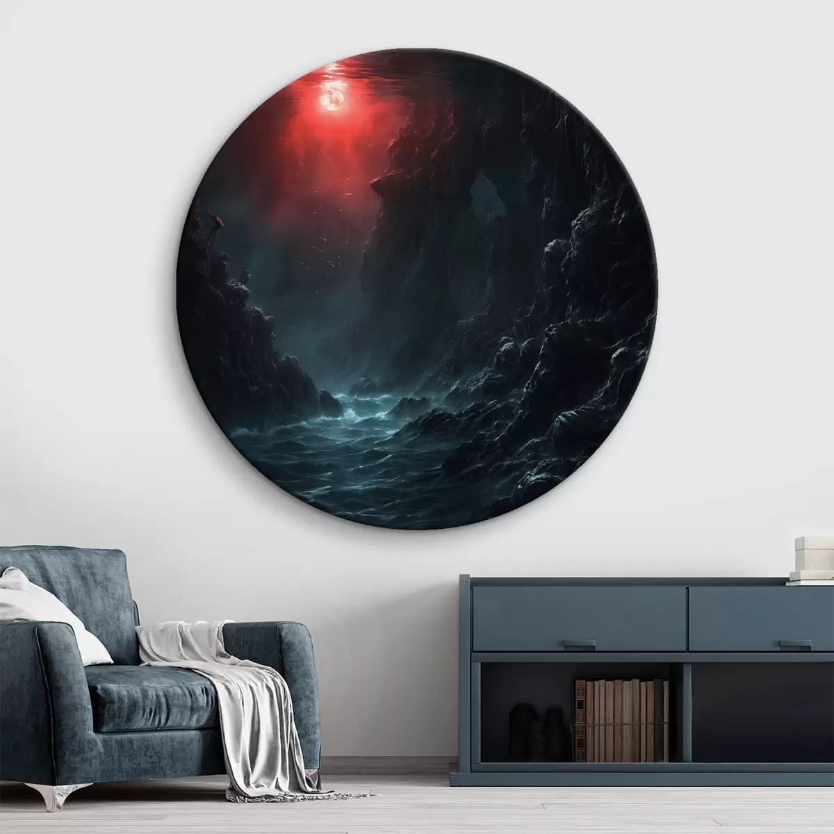 Picturi rotunde Defileu marin întunecat cu lumină roșie de sus r44870