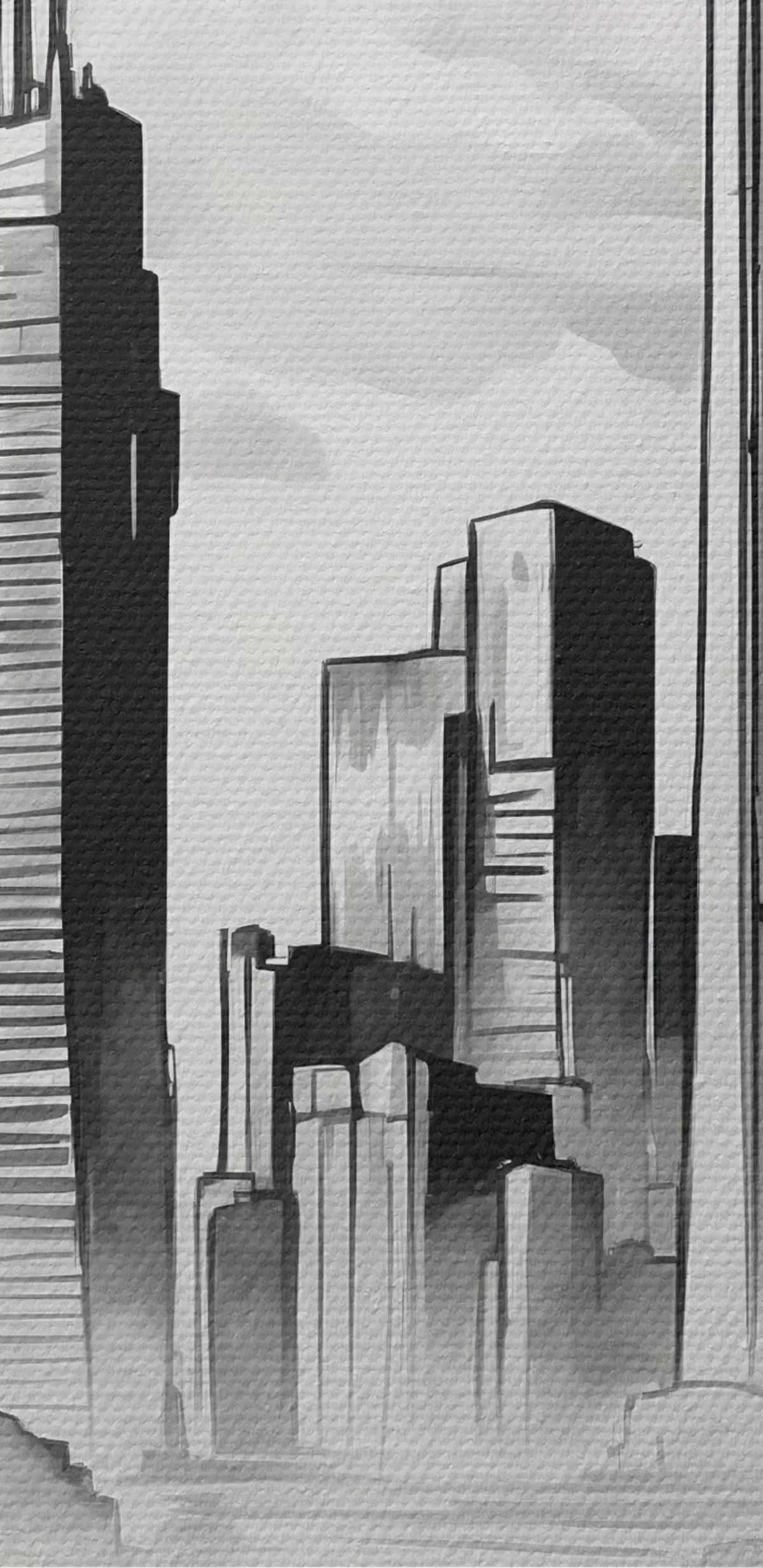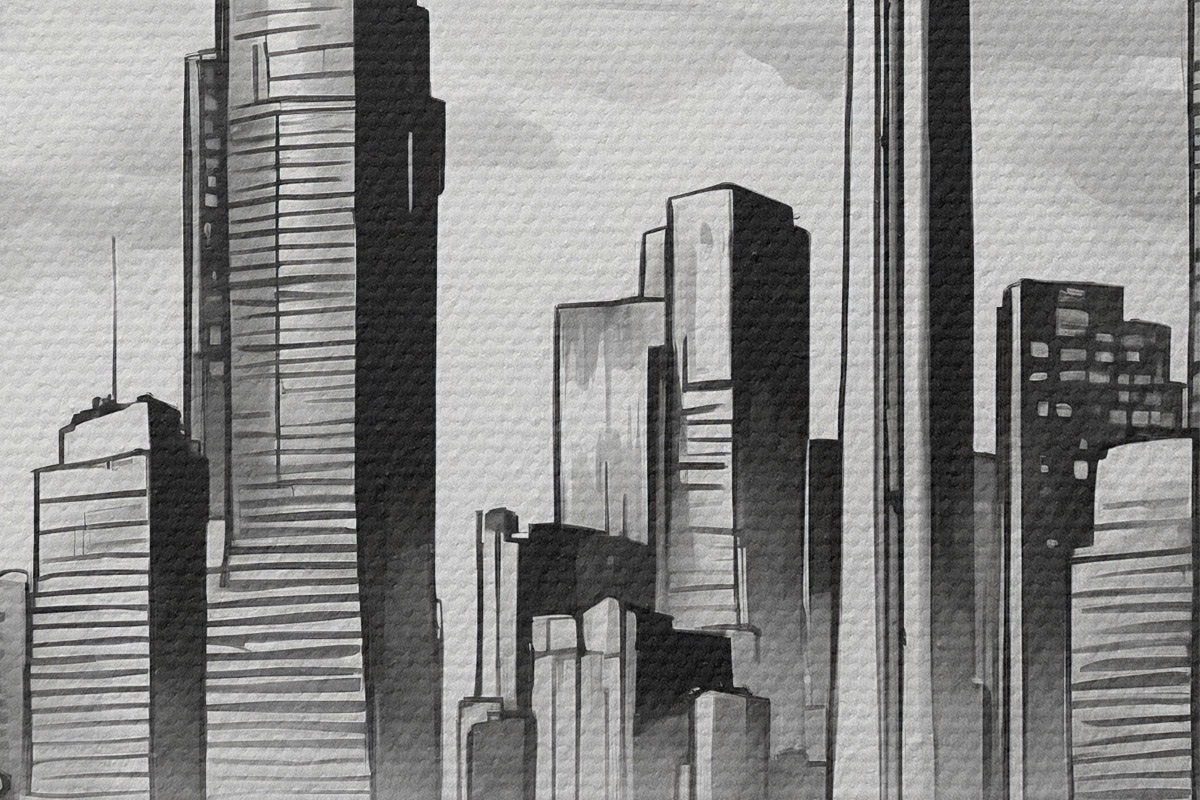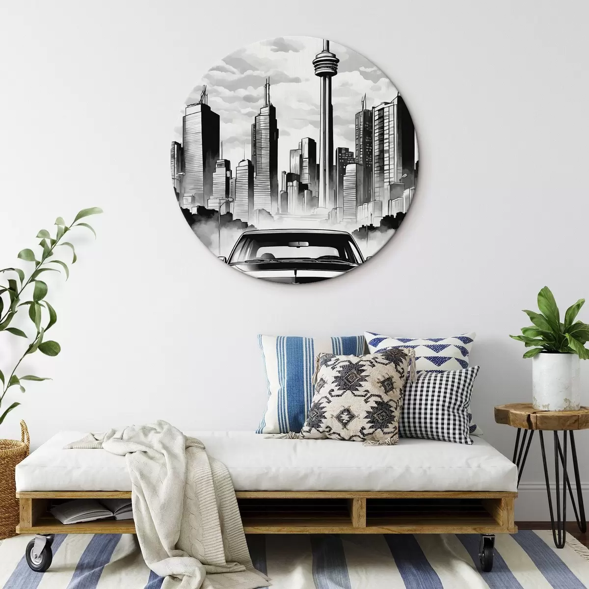 Picturi rotunde Retro masina pe fundal de oraș monocrom cu zgârie-nori Nr r44871