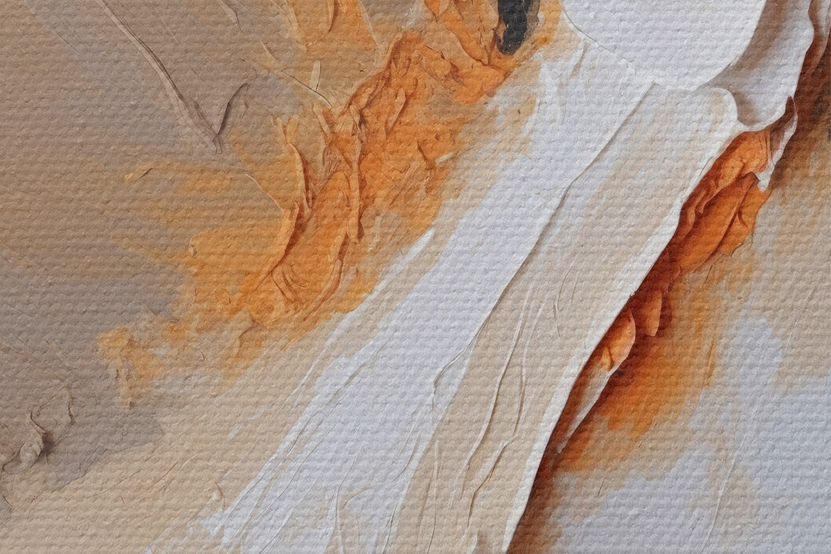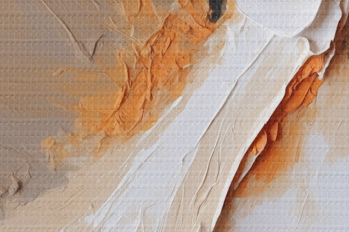 Țesătura fină a firelor de pe această pânză seamănă cu suprafața pânzelor artiștilor profesioniști.