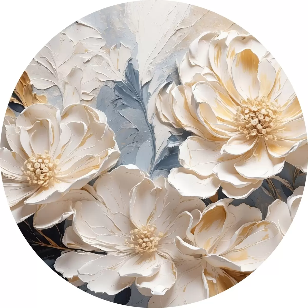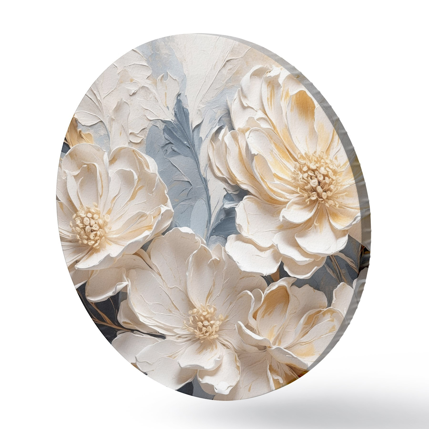 Picturi rotunde Volumetric cremă bujori pe un fundal albastru deschis Nr r44880