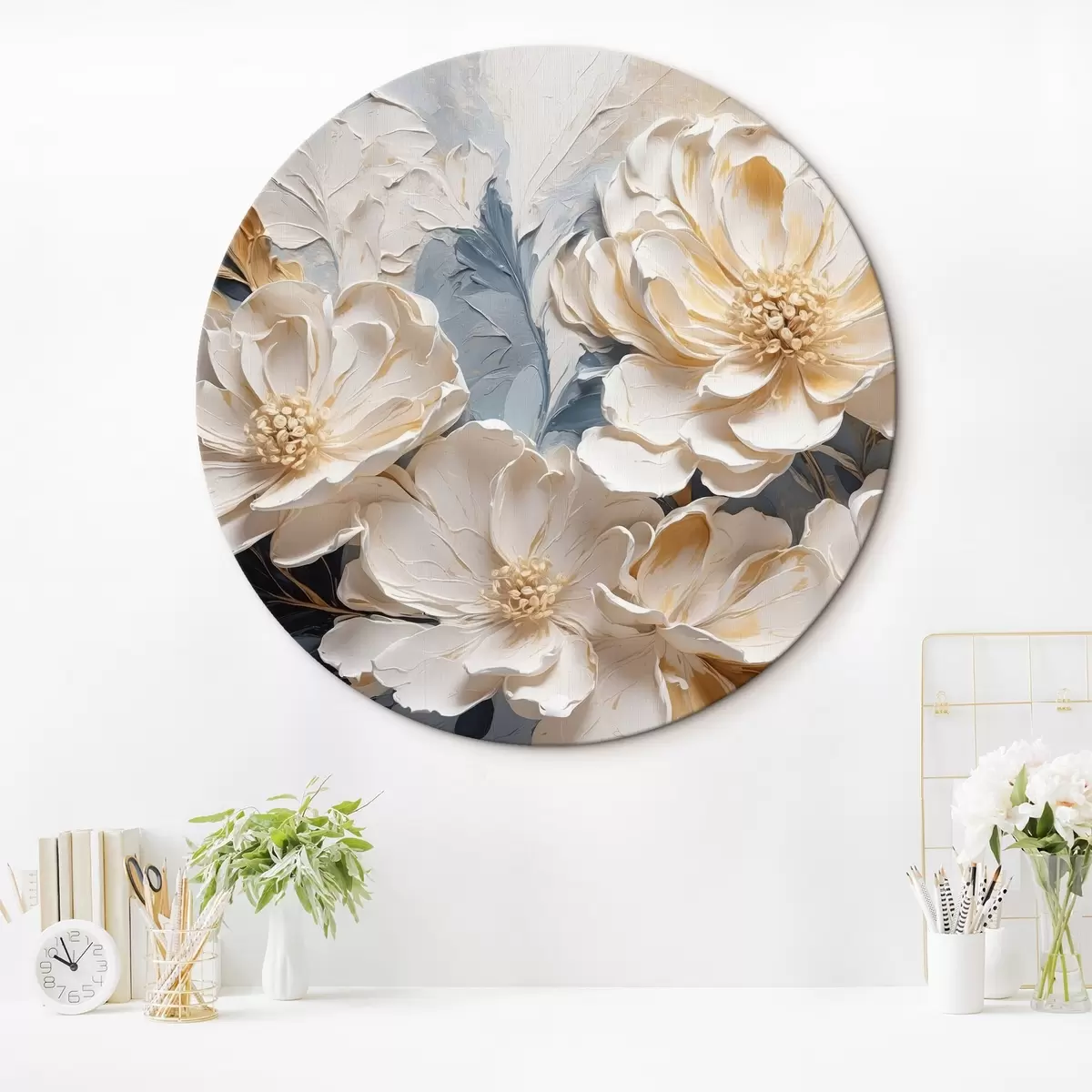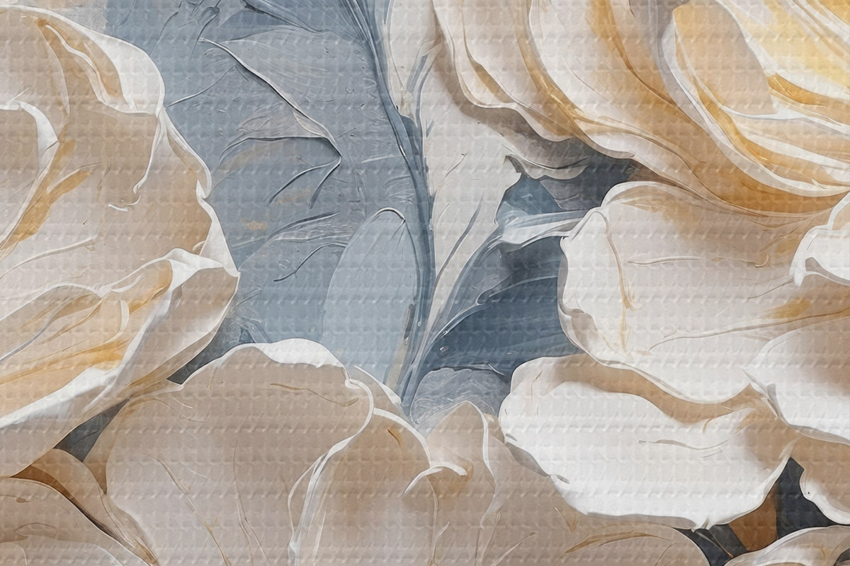 Picturi rotunde Volumetric cremă bujori pe un fundal albastru deschis r44880