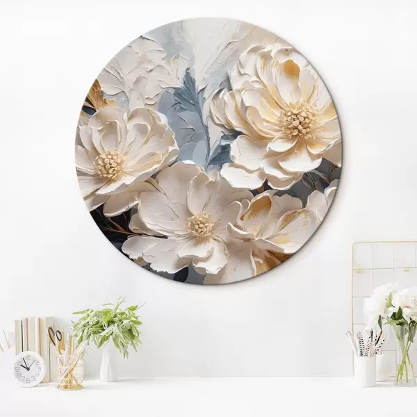 Picturi rotunde Volumetric cremă bujori pe un fundal albastru deschis r44880
