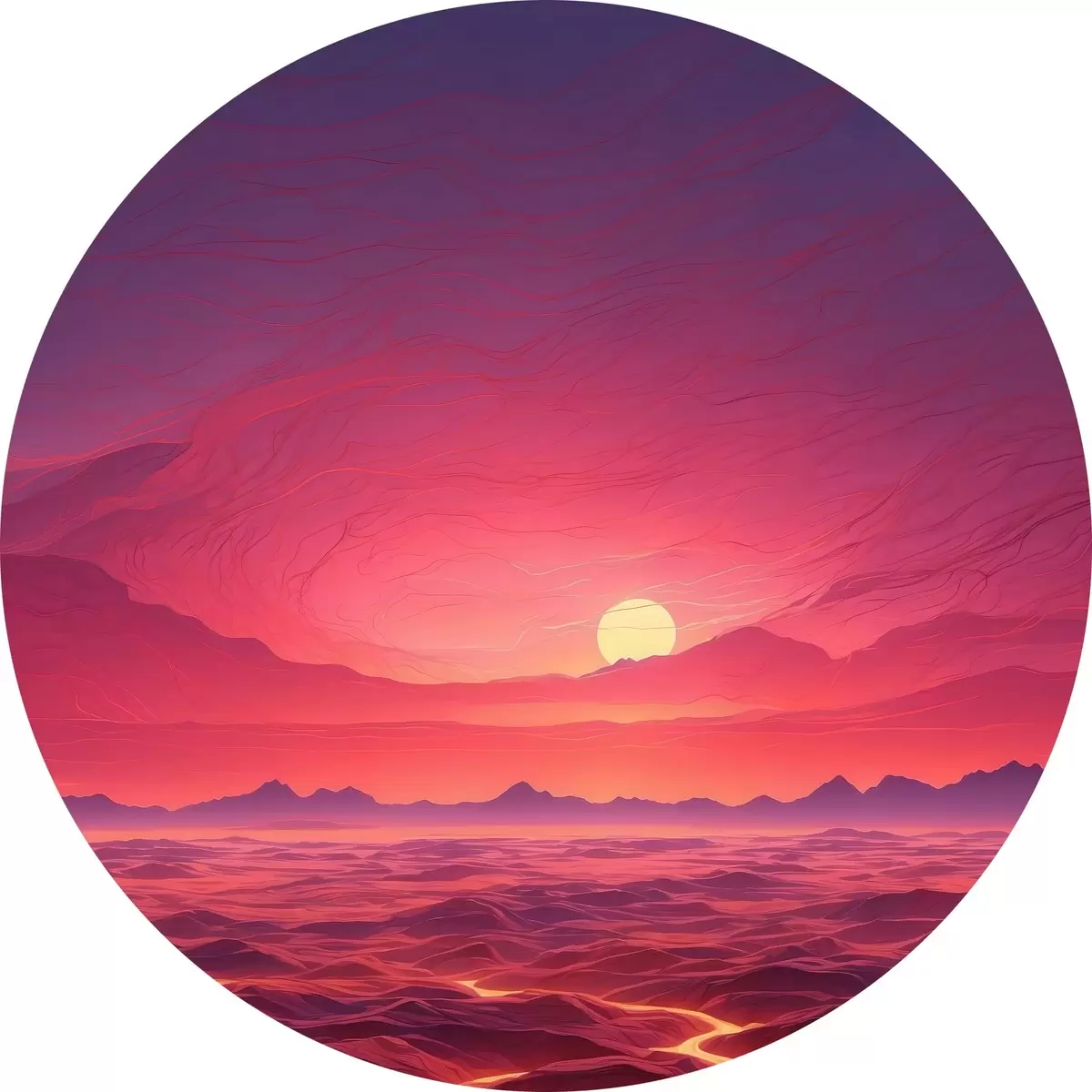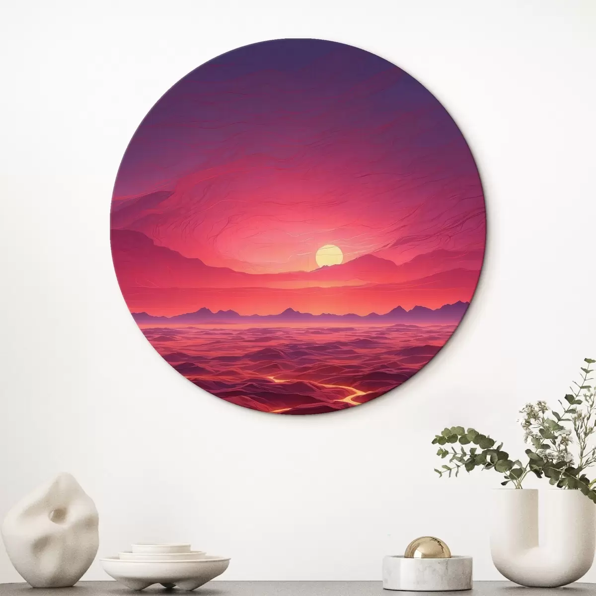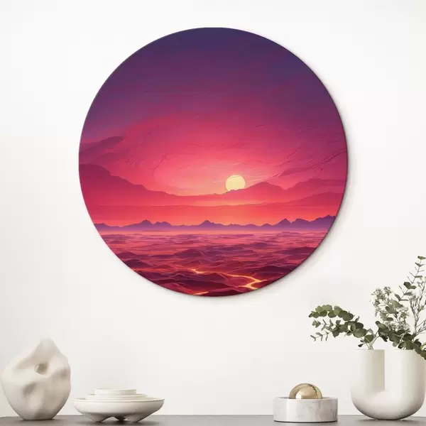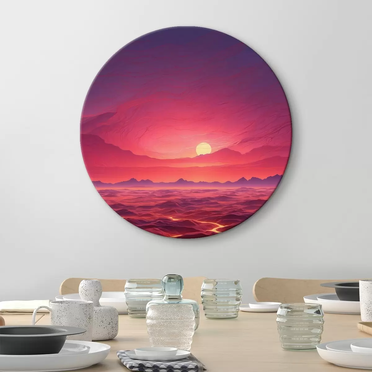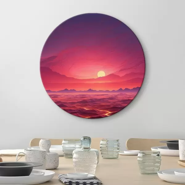 Picturi rotunde Peisaj fierbinte cu fluxuri de lavă sub un cer roșu Nr r44886