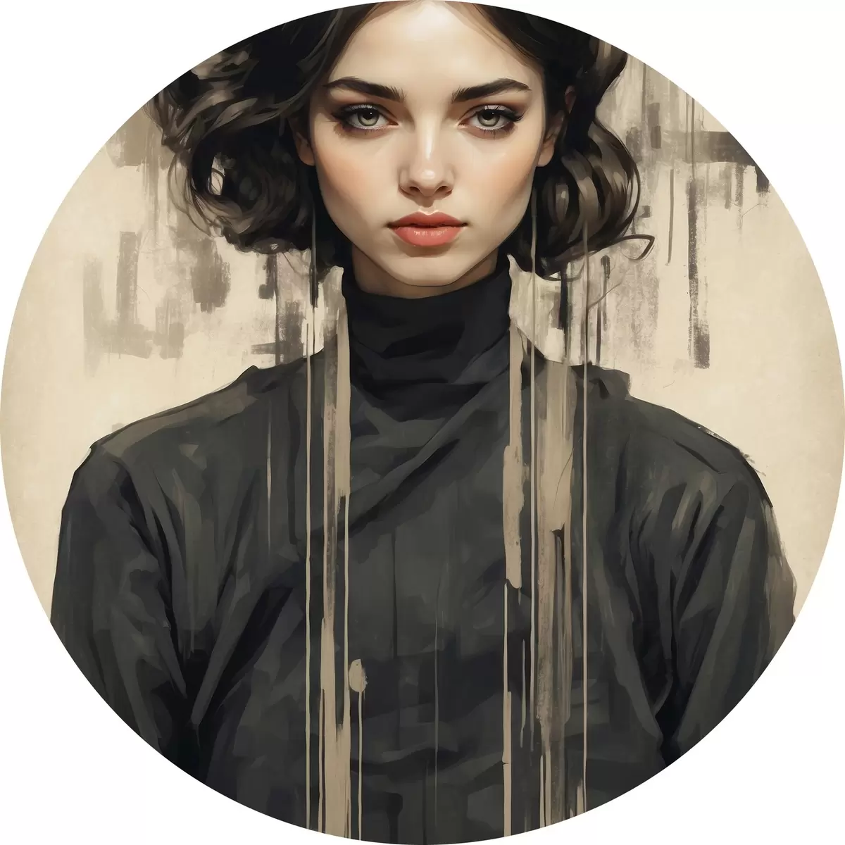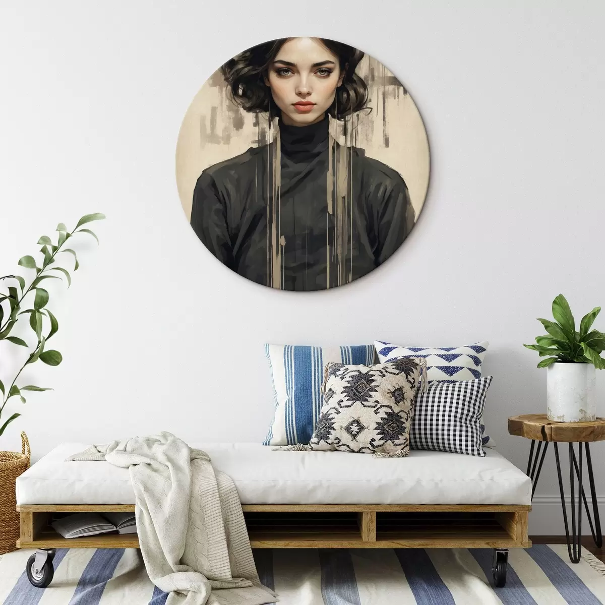 Picturi rotunde Portret de femeie cu păr negru scurt pe fundal abstract r44890