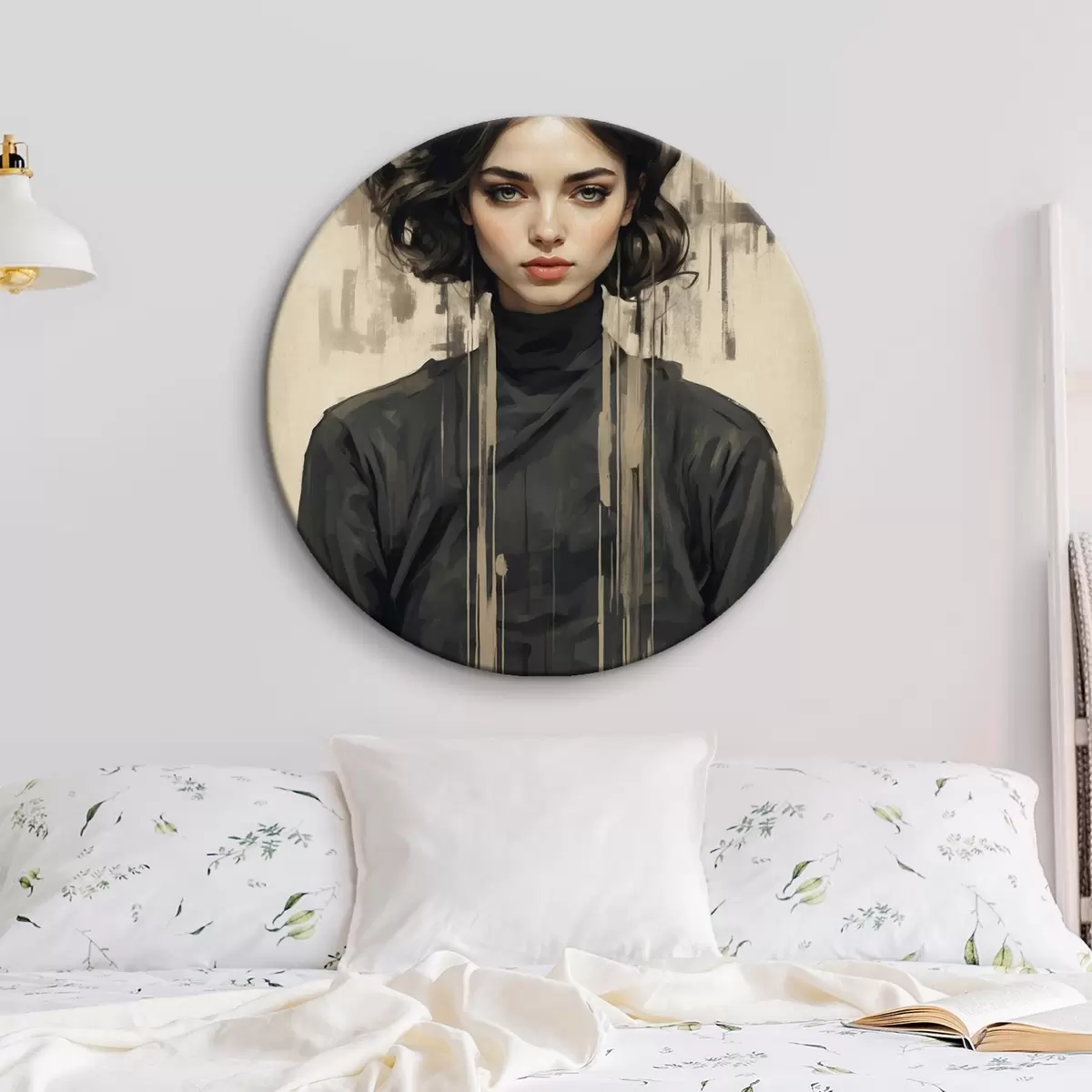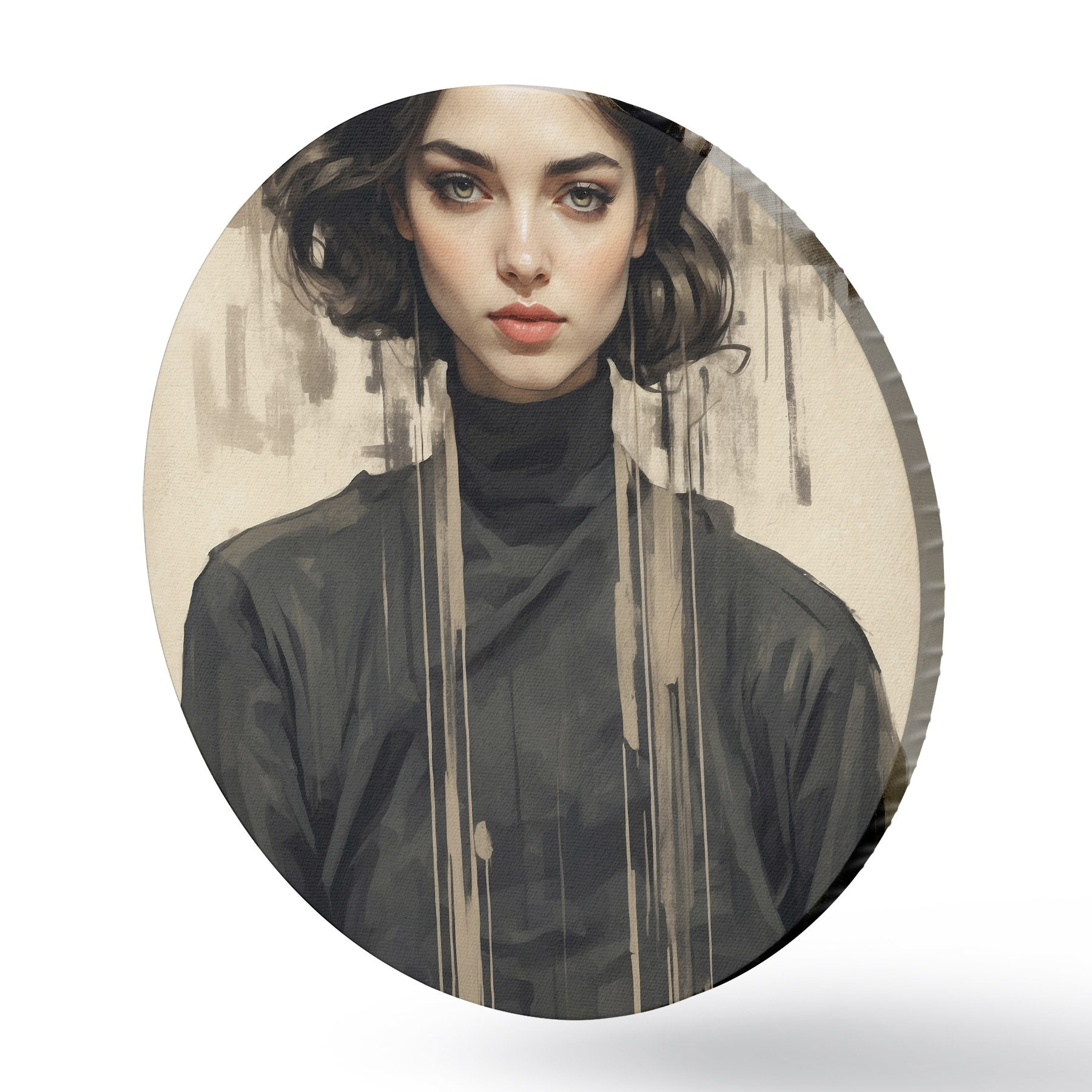 Picturi rotunde Portret de femeie cu păr negru scurt pe fundal abstract Nr r44890