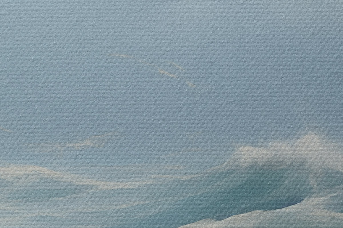 Țesătura fină a firelor de pe această pânză seamănă cu suprafața pânzelor artiștilor profesioniști.