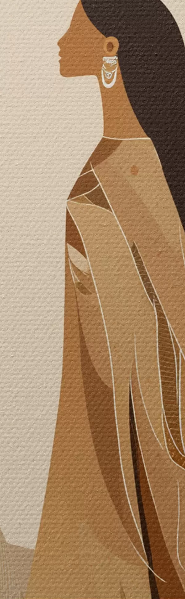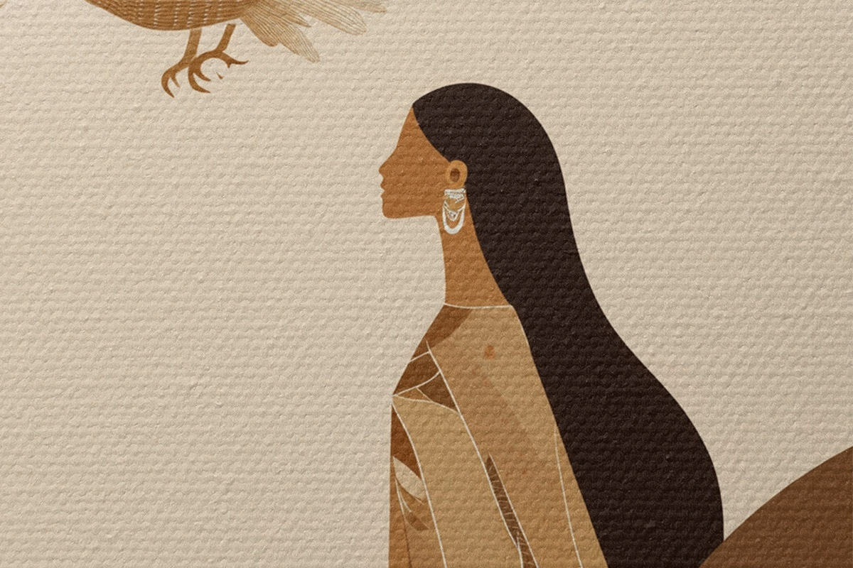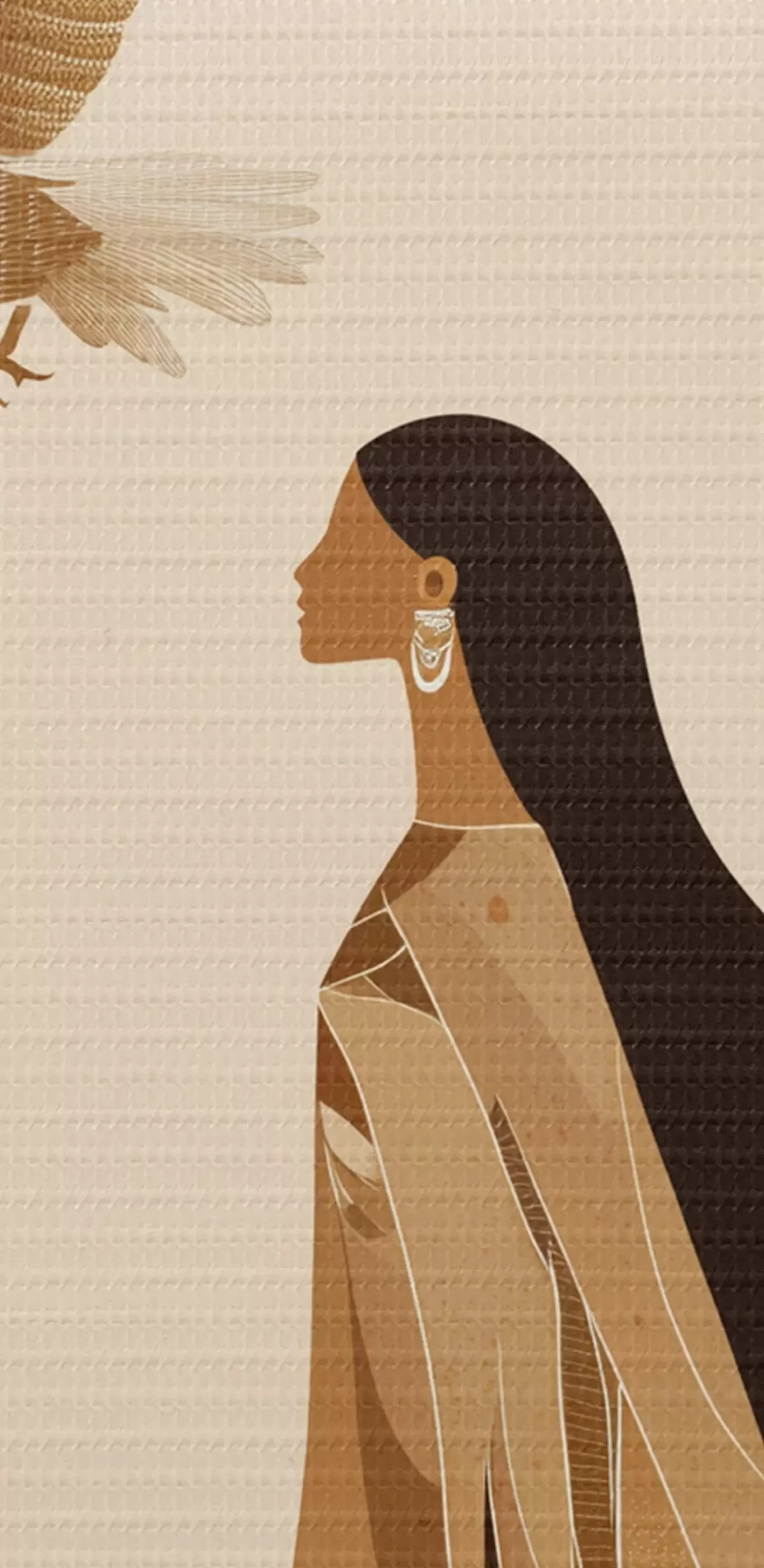 Picturi rotunde Abstracție cu femeie și vultur în cer, culori bej Nr r44978