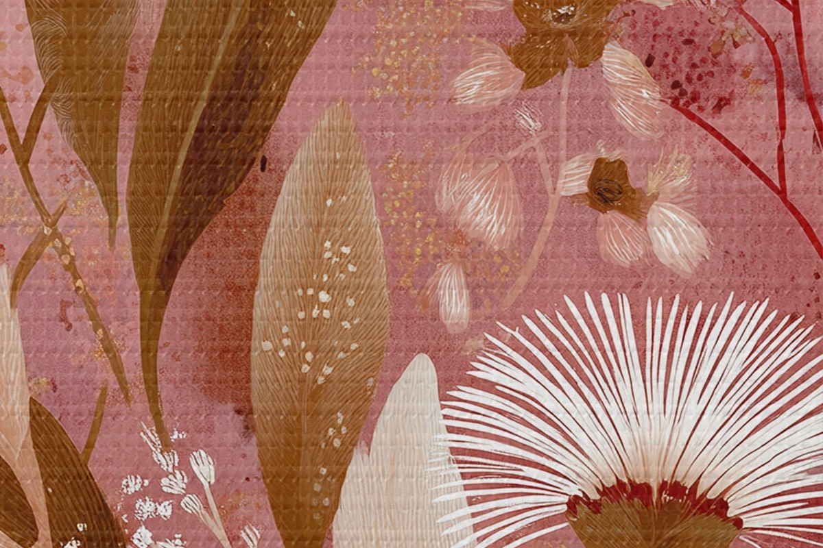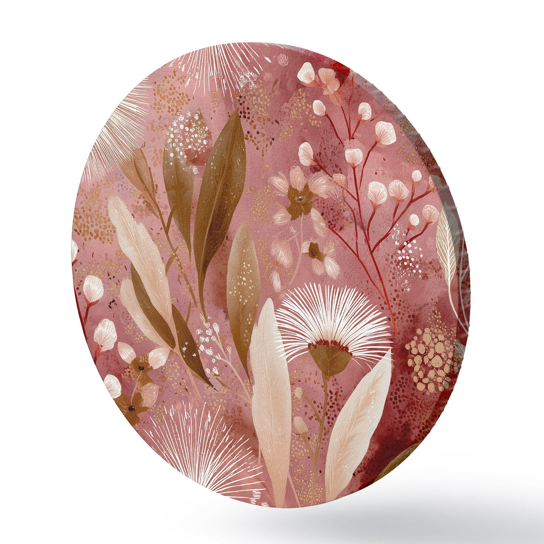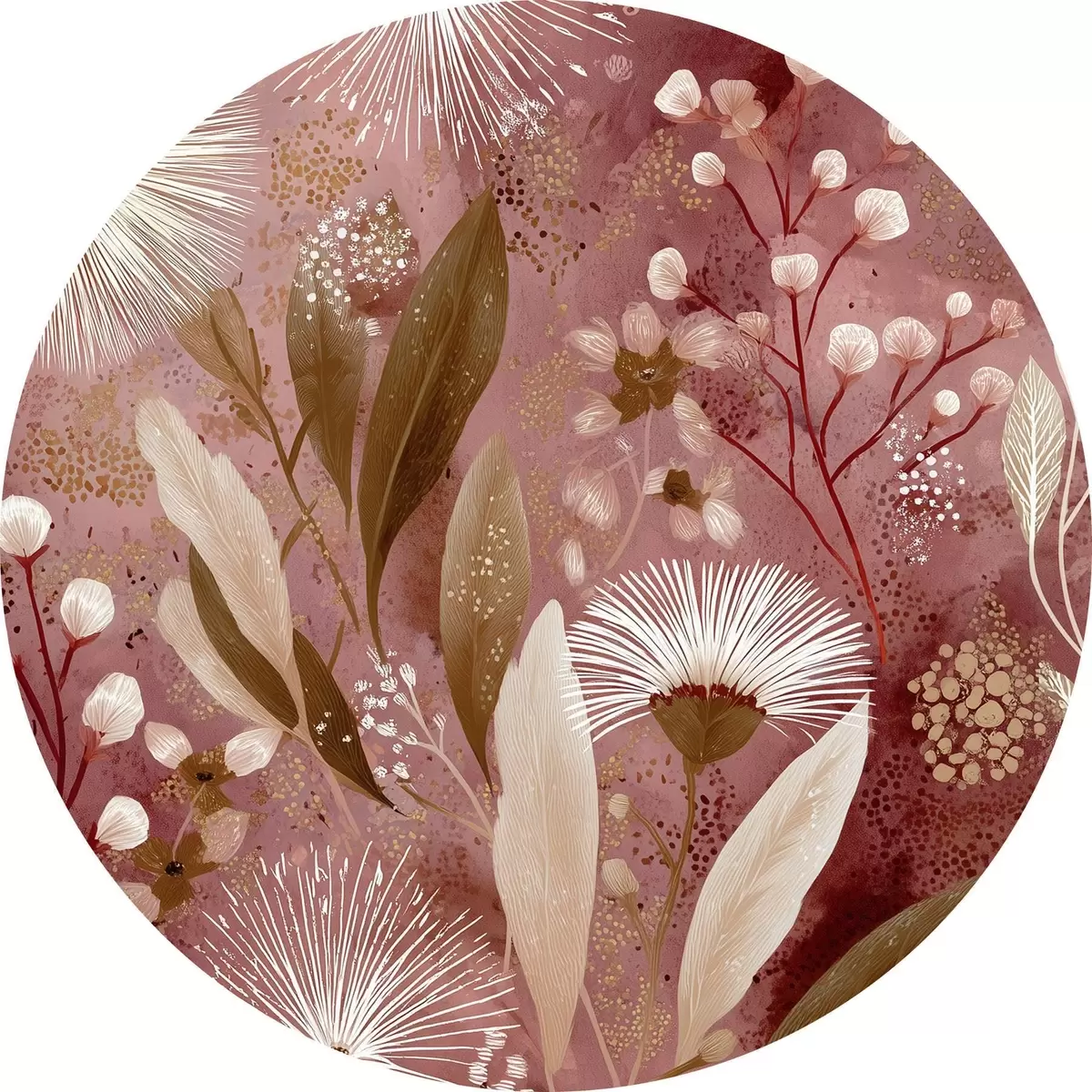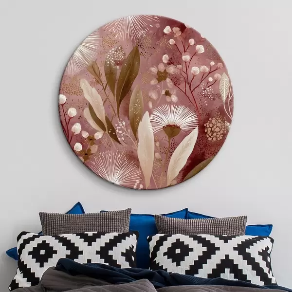 Picturi rotunde Boho stil flori albe pe fundal roșu, desen detaliat Nr r44979
