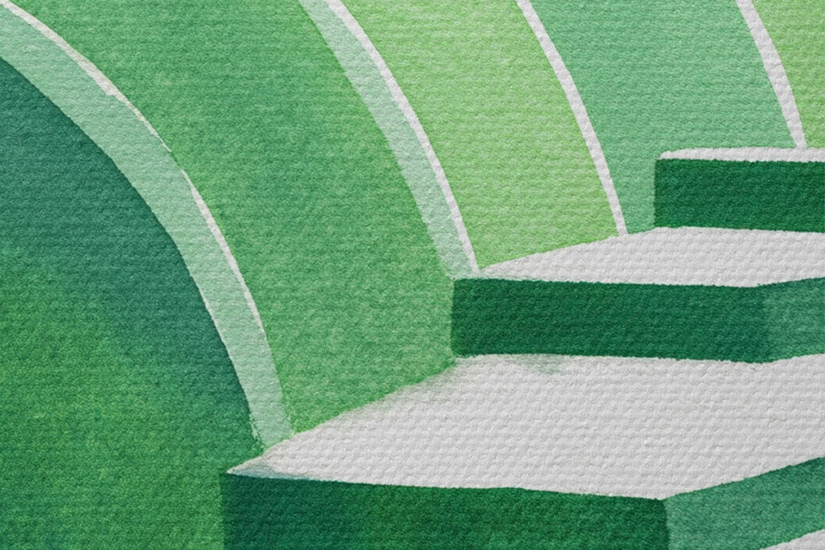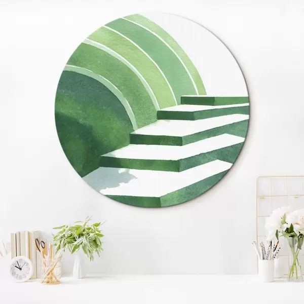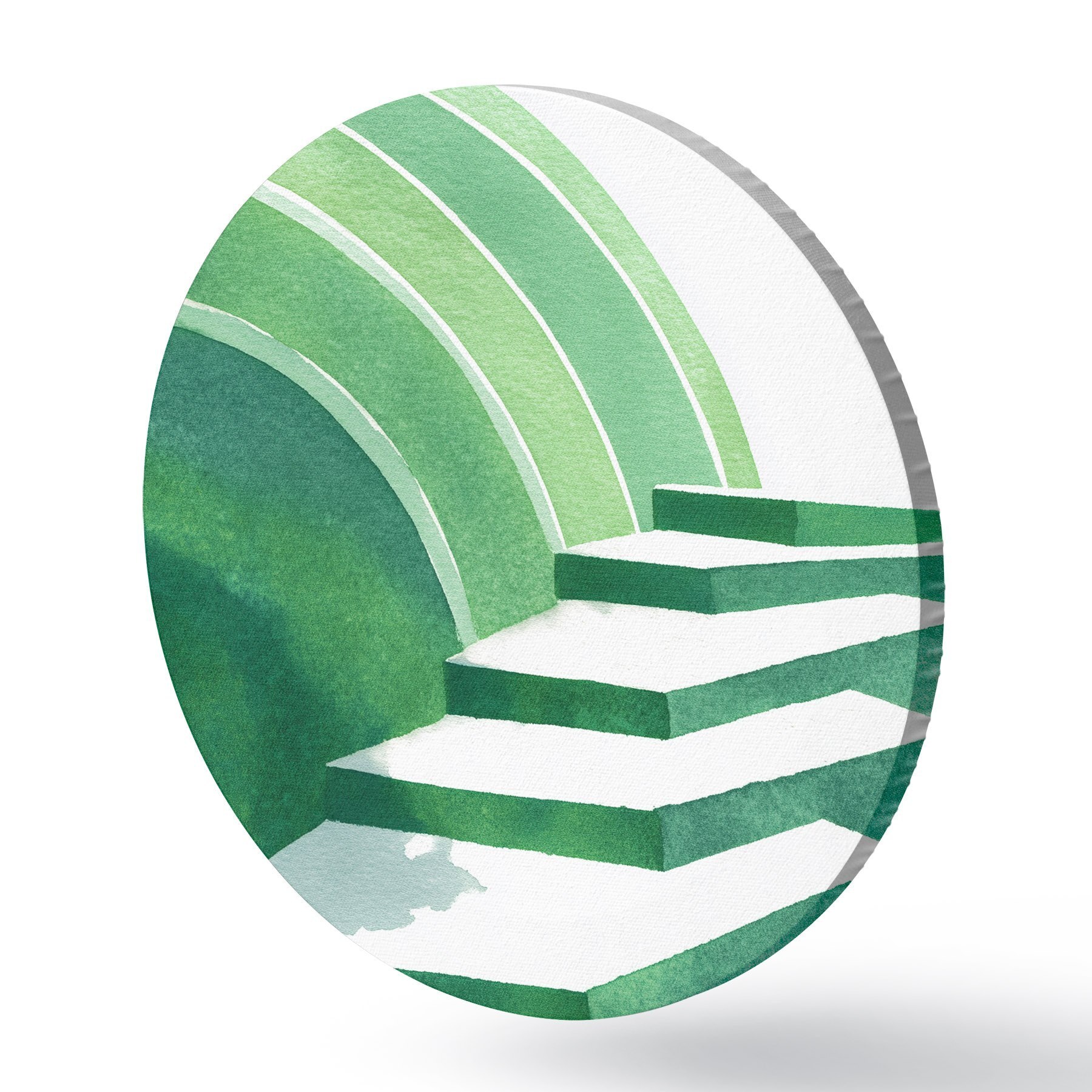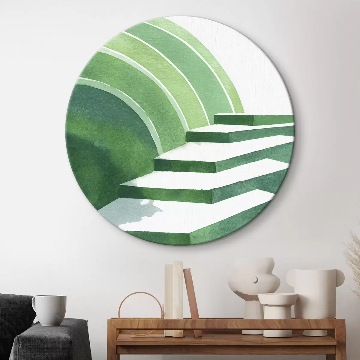 Picturi rotunde Abstracție geometrică în culori verzi, stil acuarelă Nr r44981