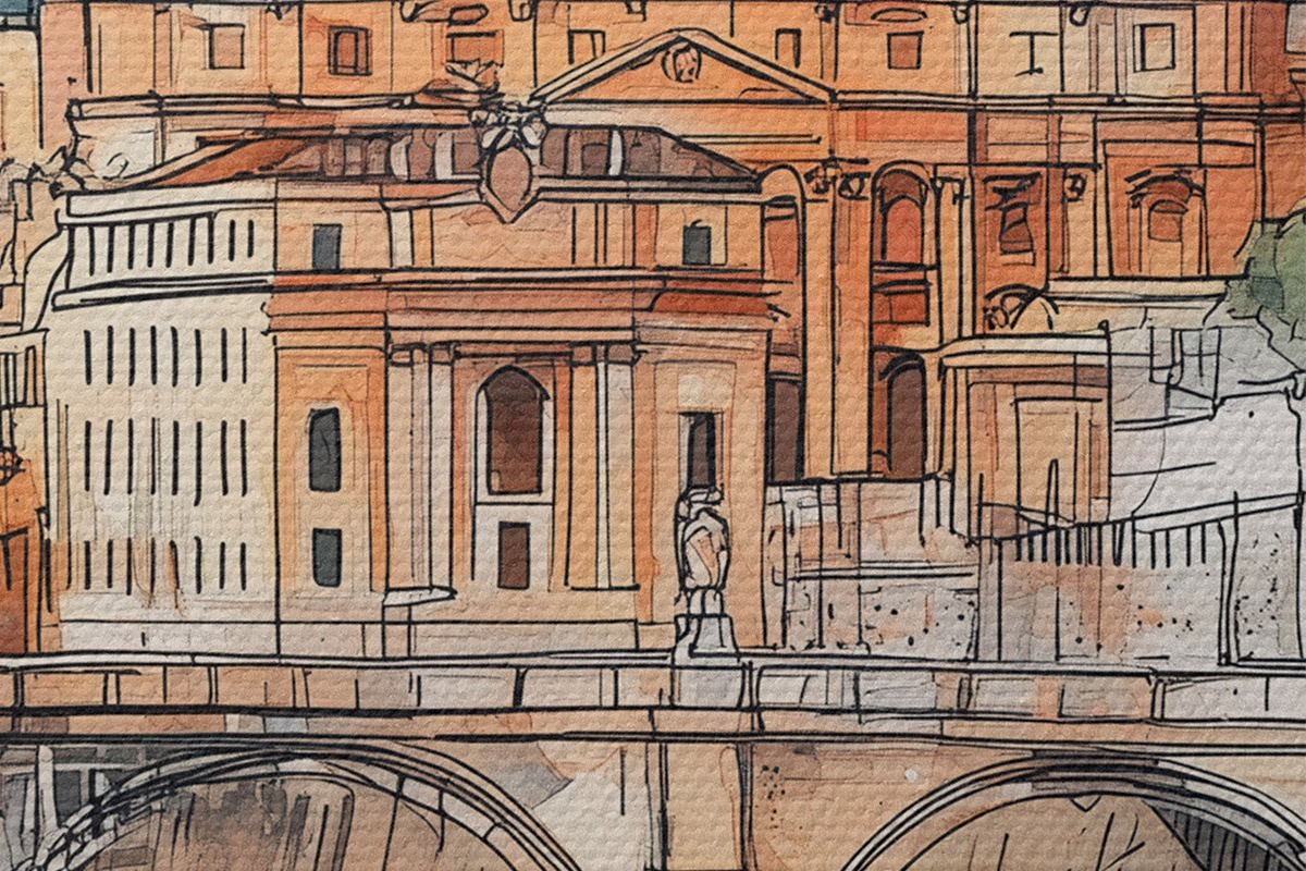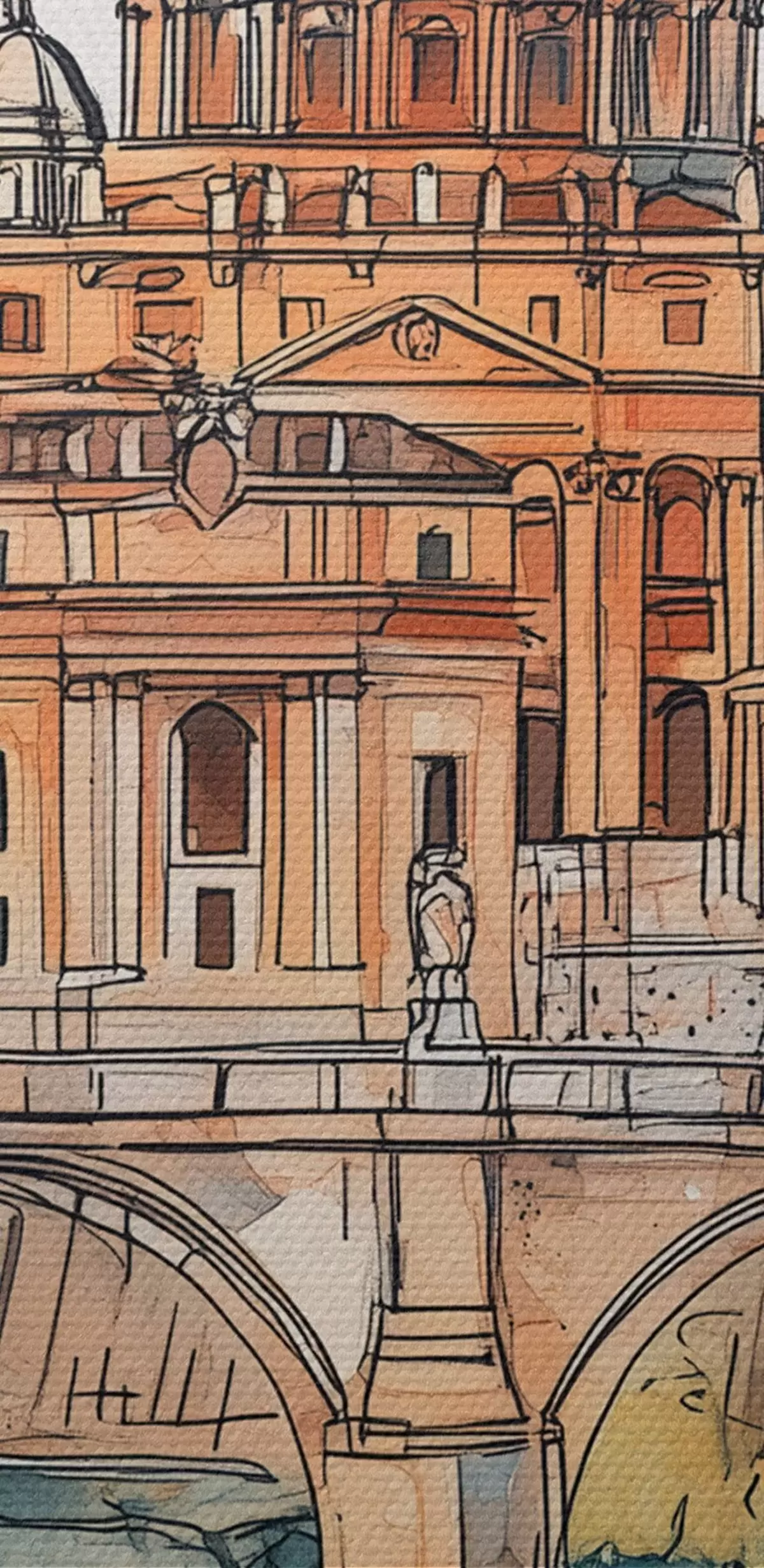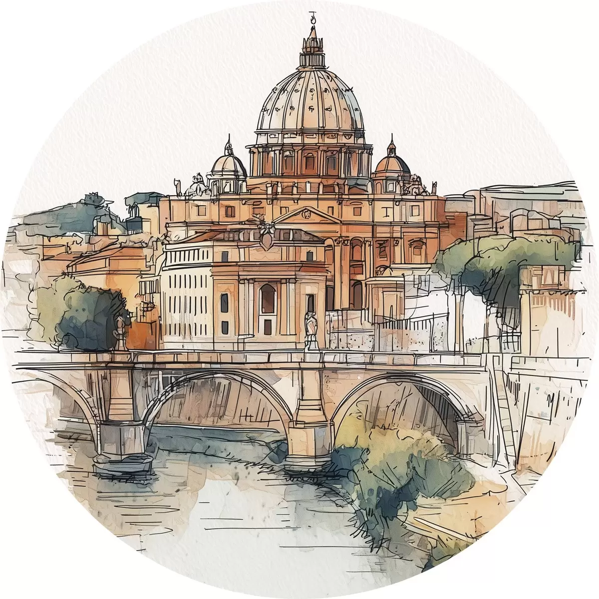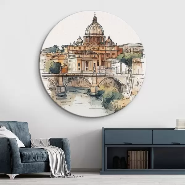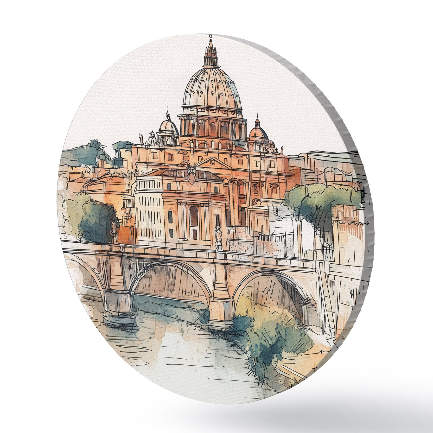 Picturi rotunde Acuarelă Roma oraș, schiță desen, arhitectură Nr r44983