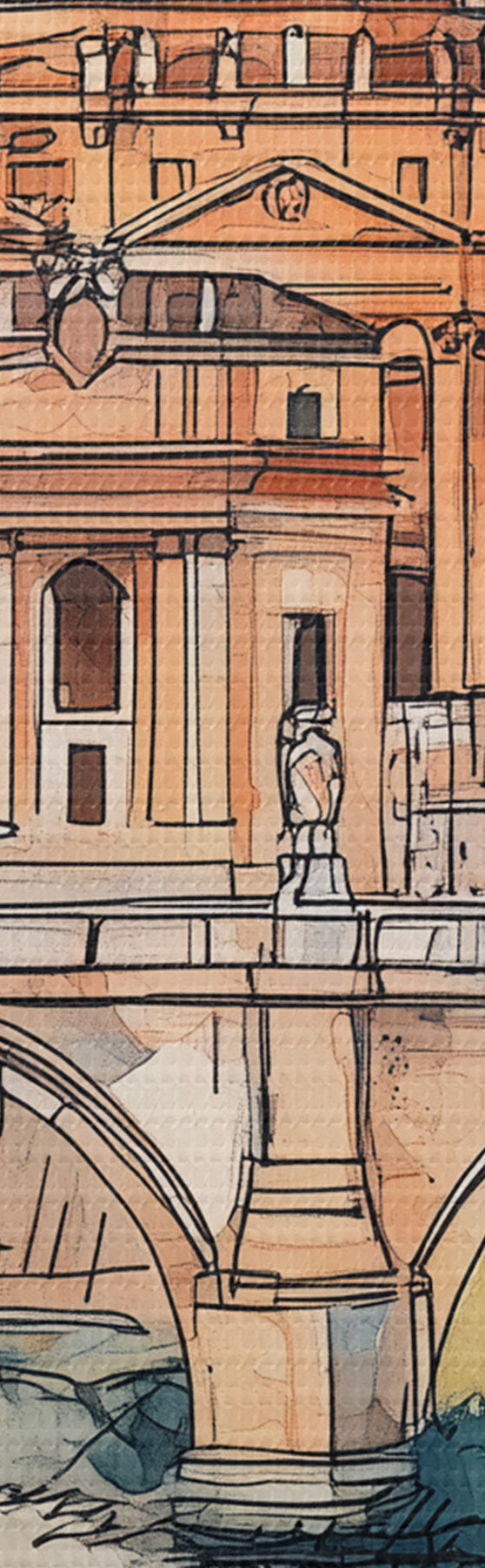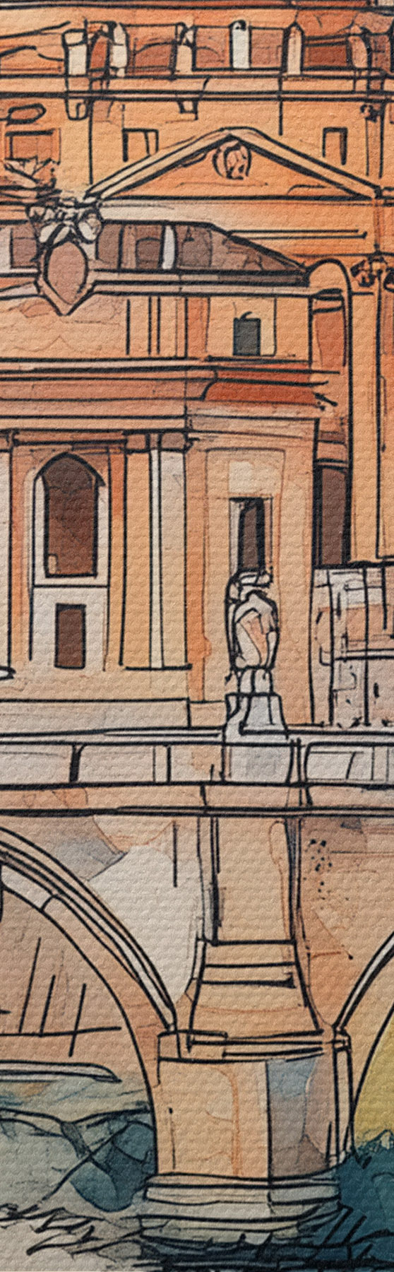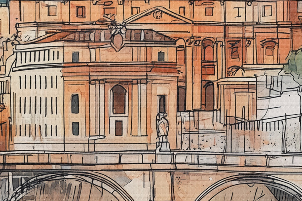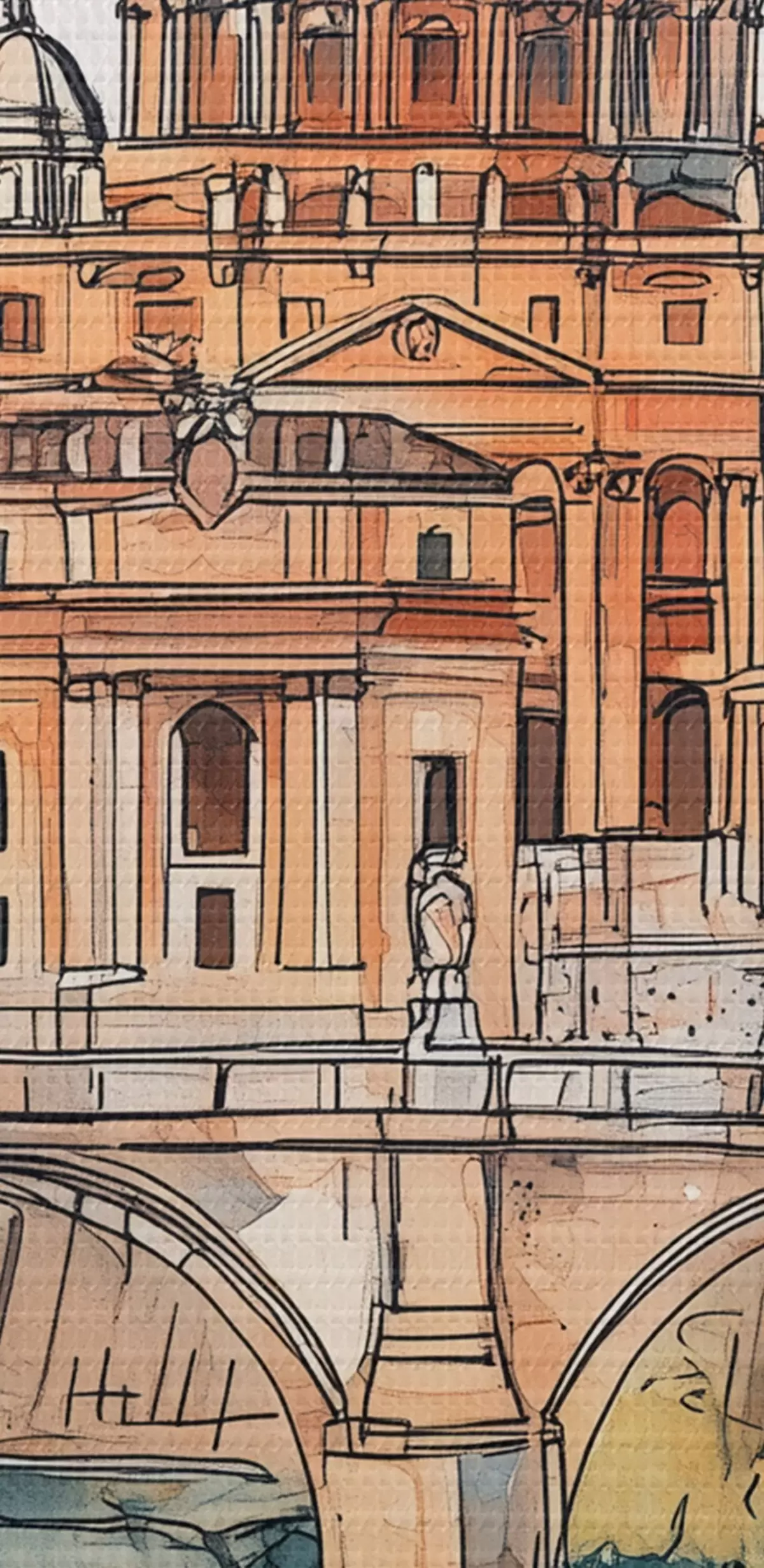 Picturi rotunde Acuarelă Roma oraș, schiță desen, arhitectură Nr r44983