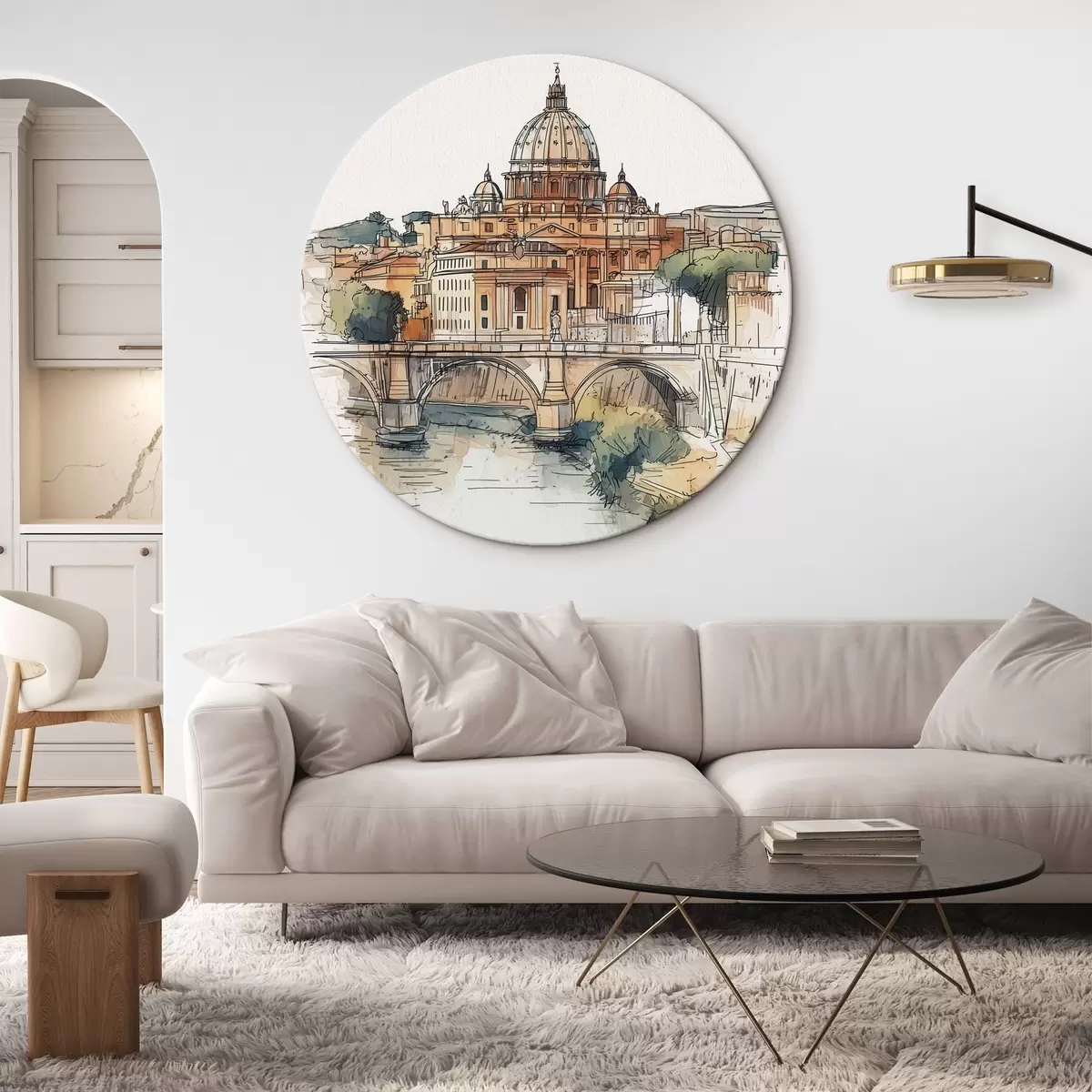 Picturi rotunde Acuarelă Roma oraș, schiță desen, arhitectură r44983