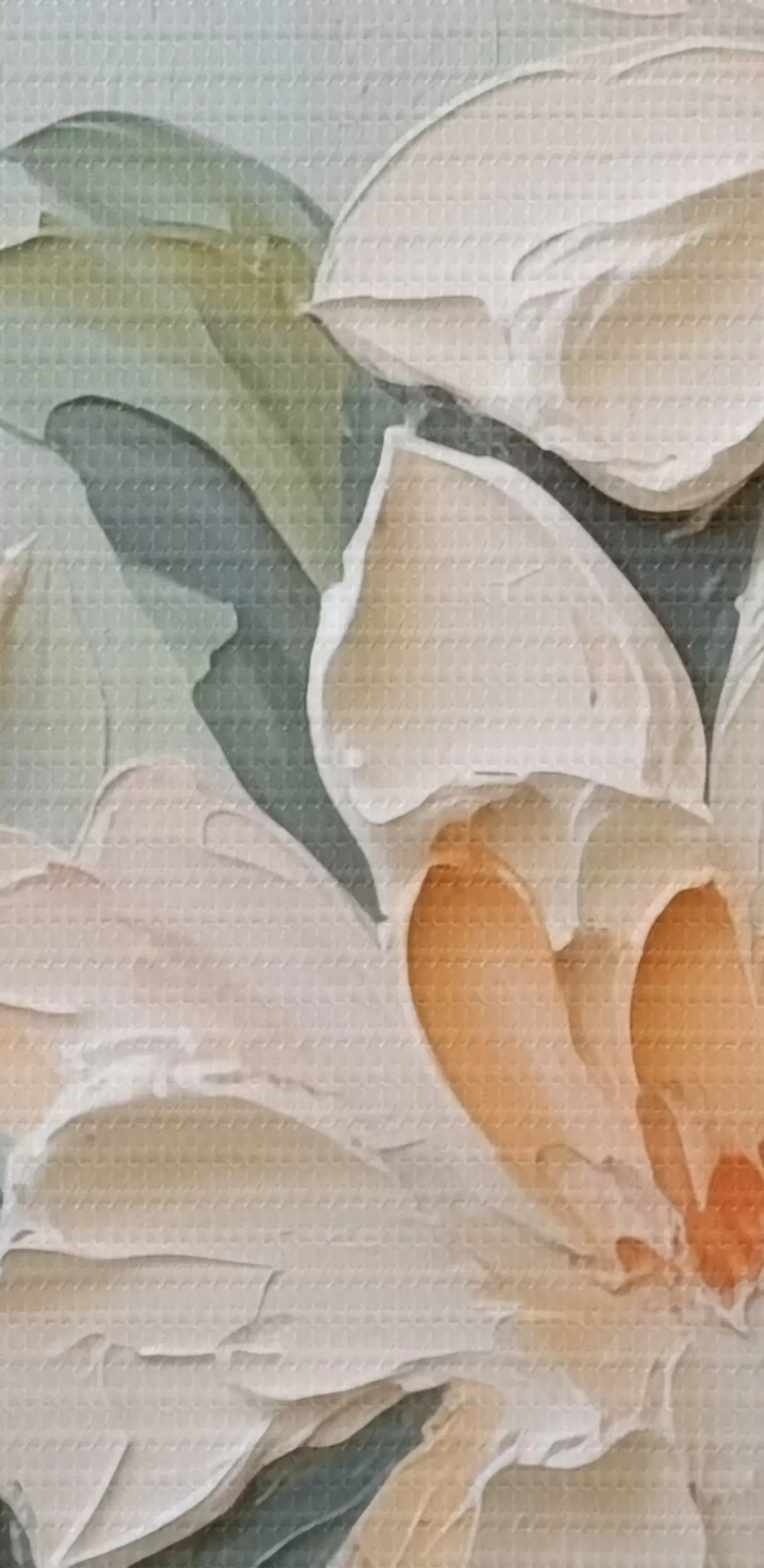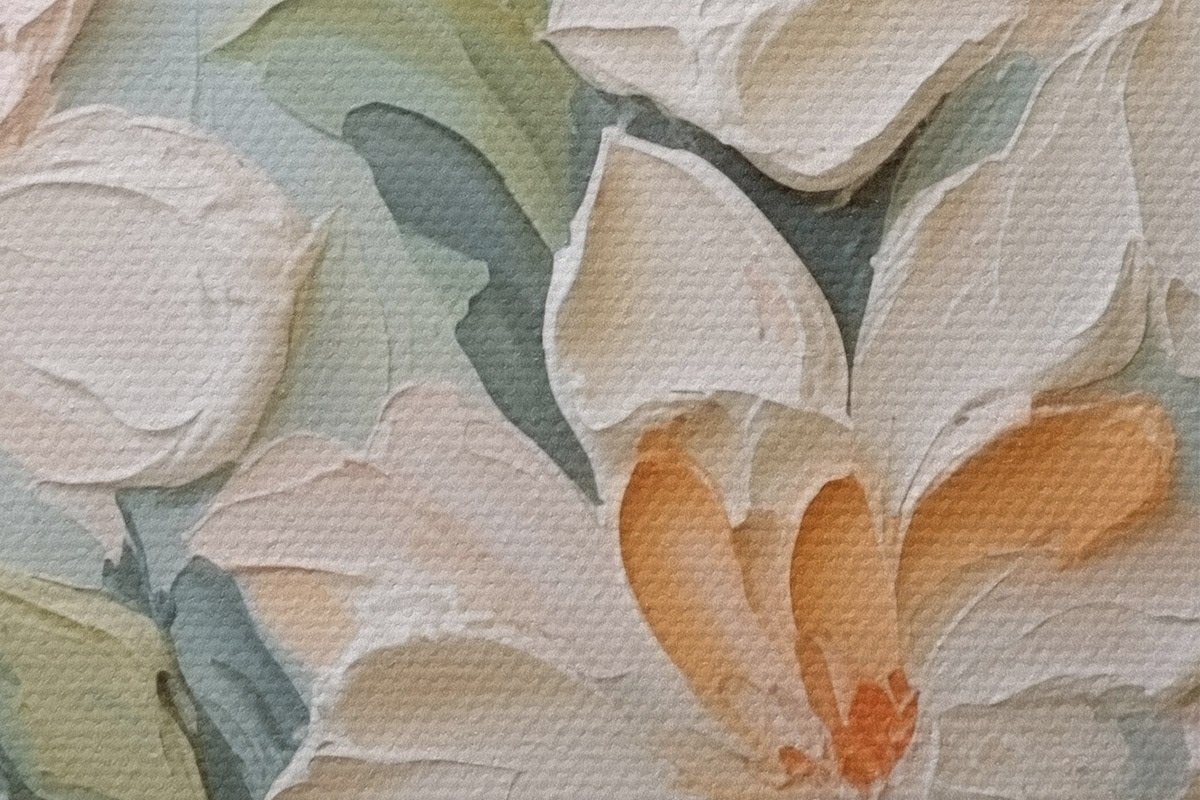 Țesătura fină a firelor de pe această pânză seamănă cu suprafața pânzelor artiștilor profesioniști.