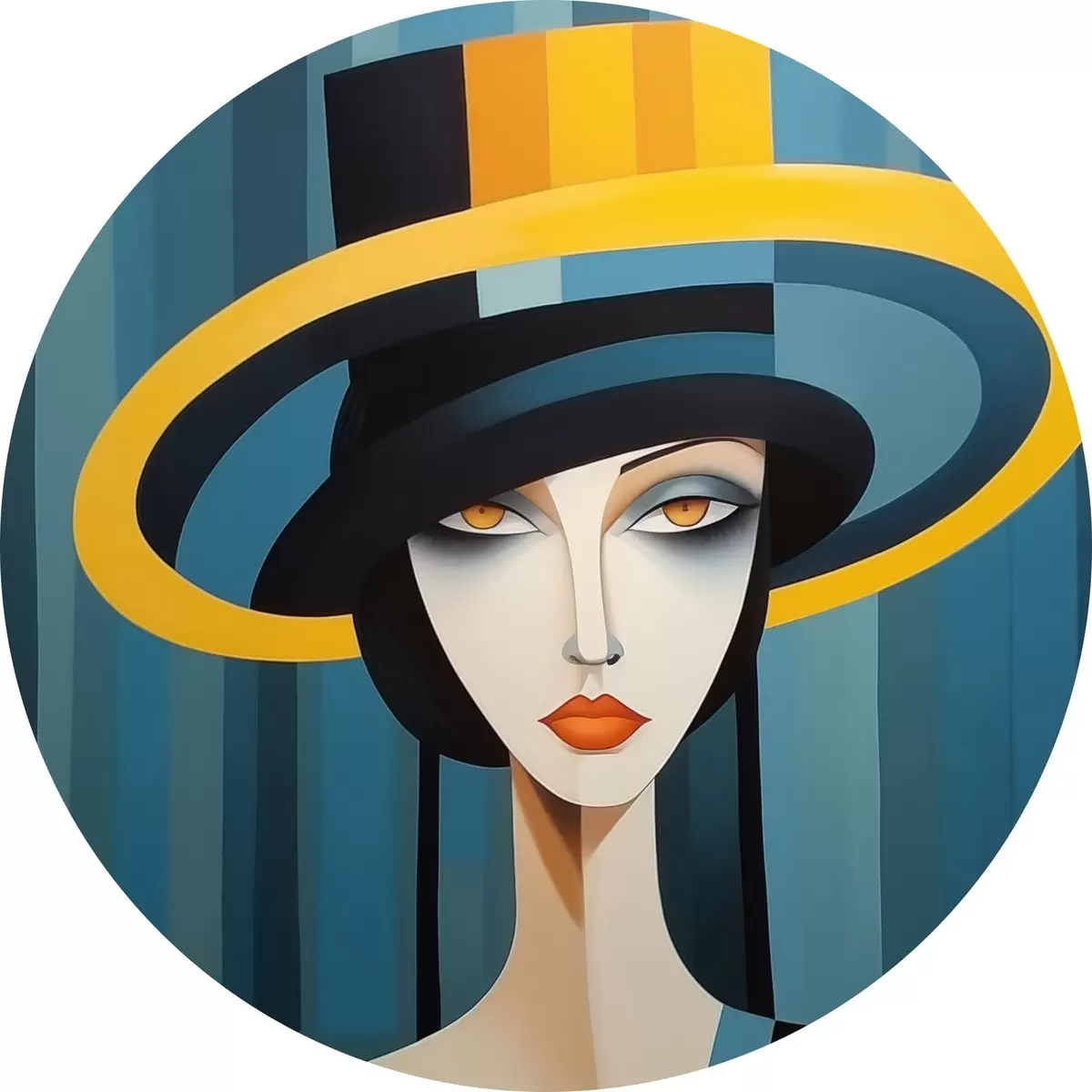 Picturi rotunde Portret abstract de femeie într-o pălărie Nr r44990