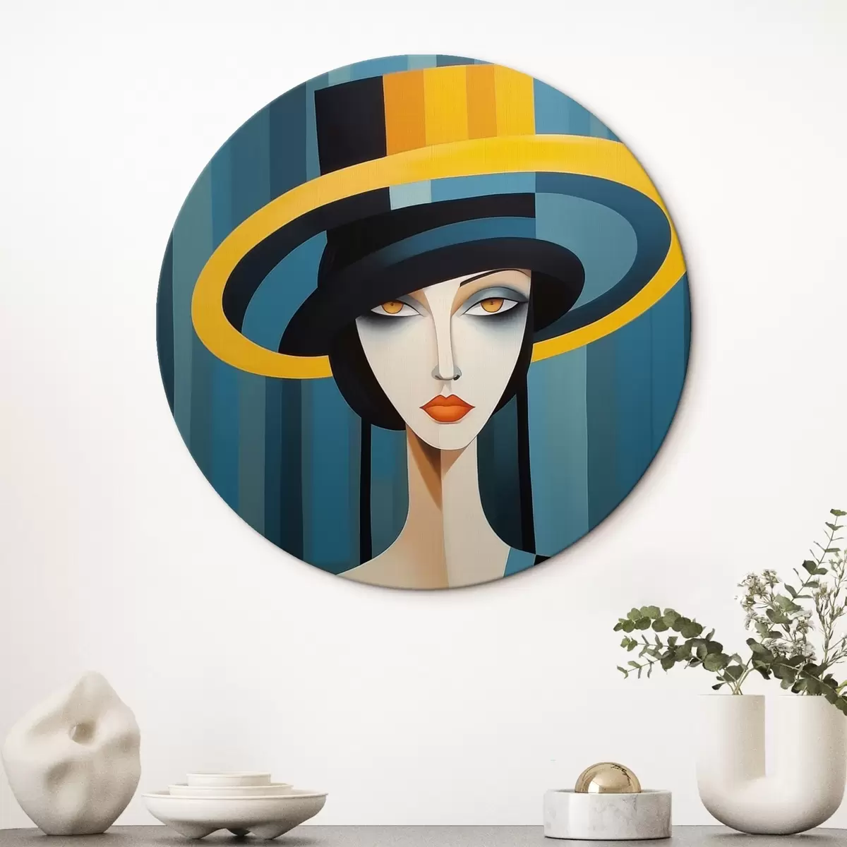 Picturi rotunde Portret abstract de femeie într-o pălărie r44990