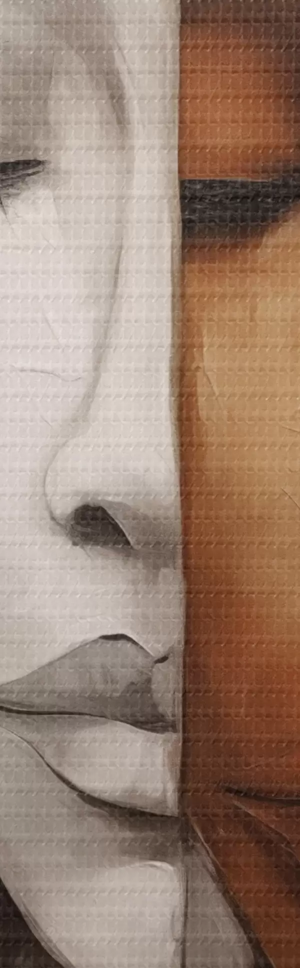 Pentru a întinde pânza pe barele de întins fără a deteriora imaginea, folosim o imagine în oglindă.