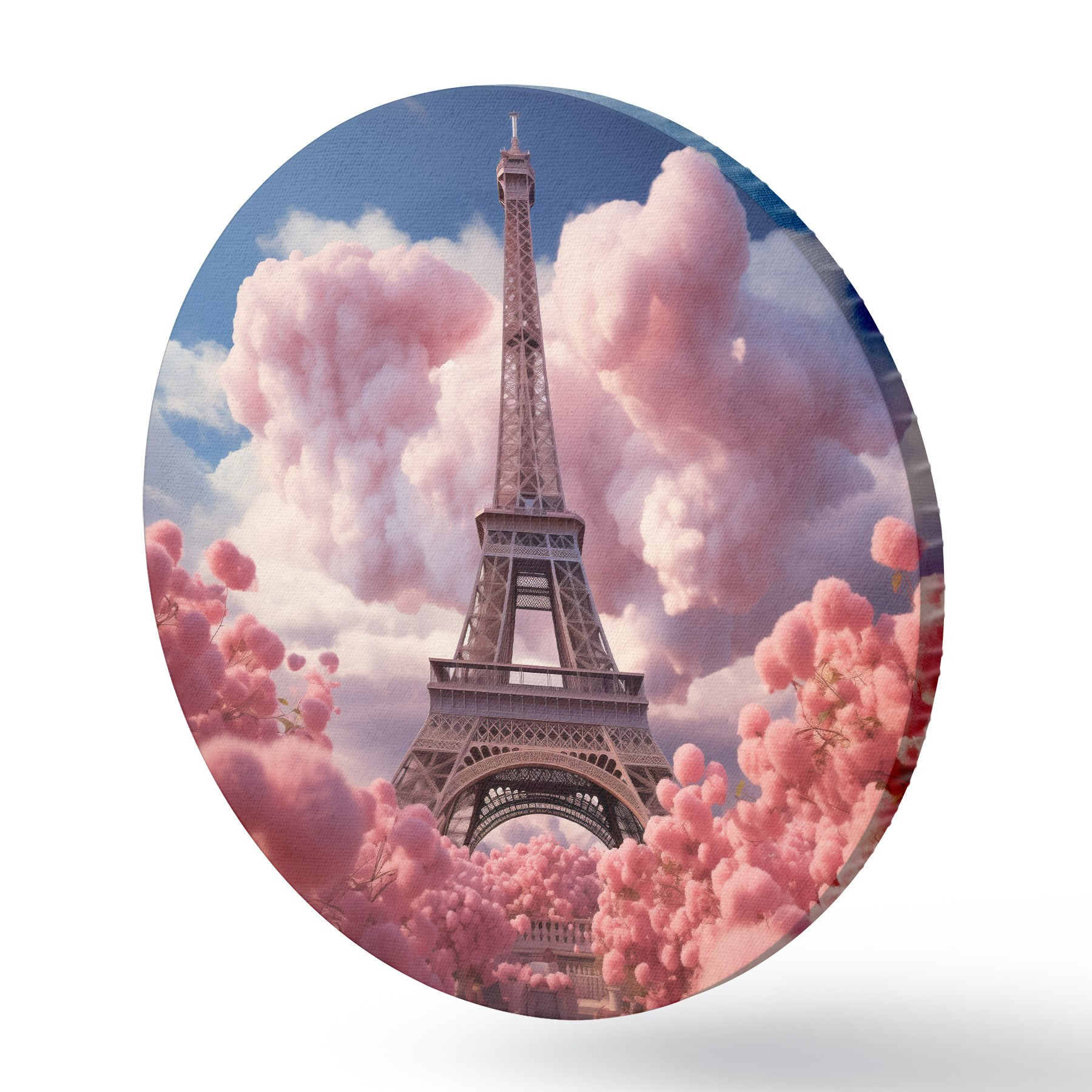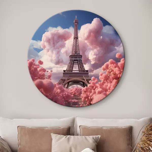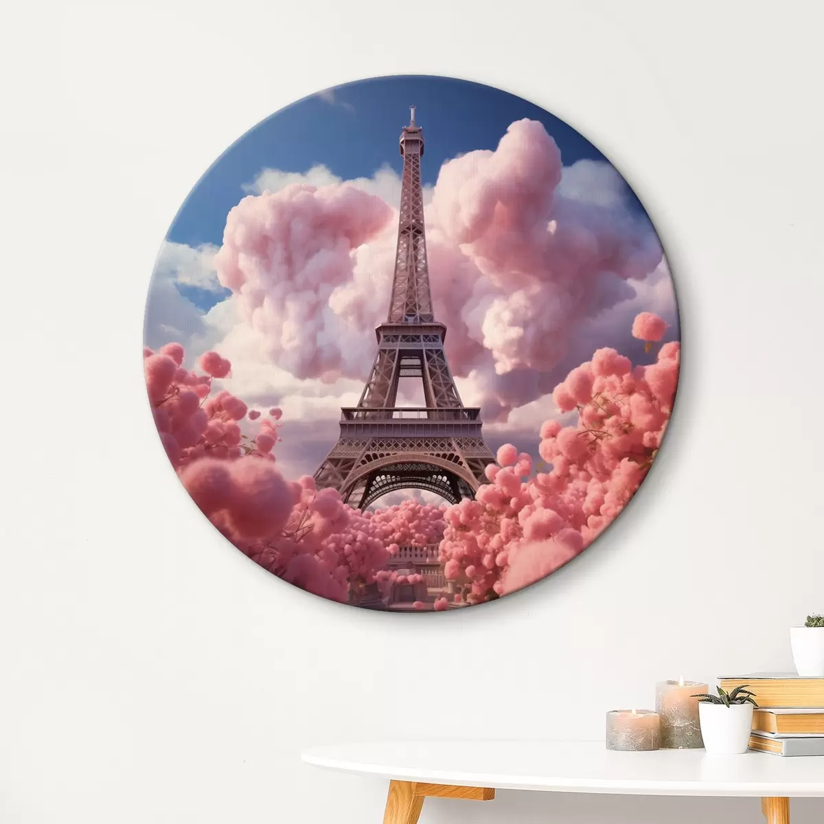 Picturi rotunde Turnul Eiffel în nori roz în stil fantasy Nr r45036