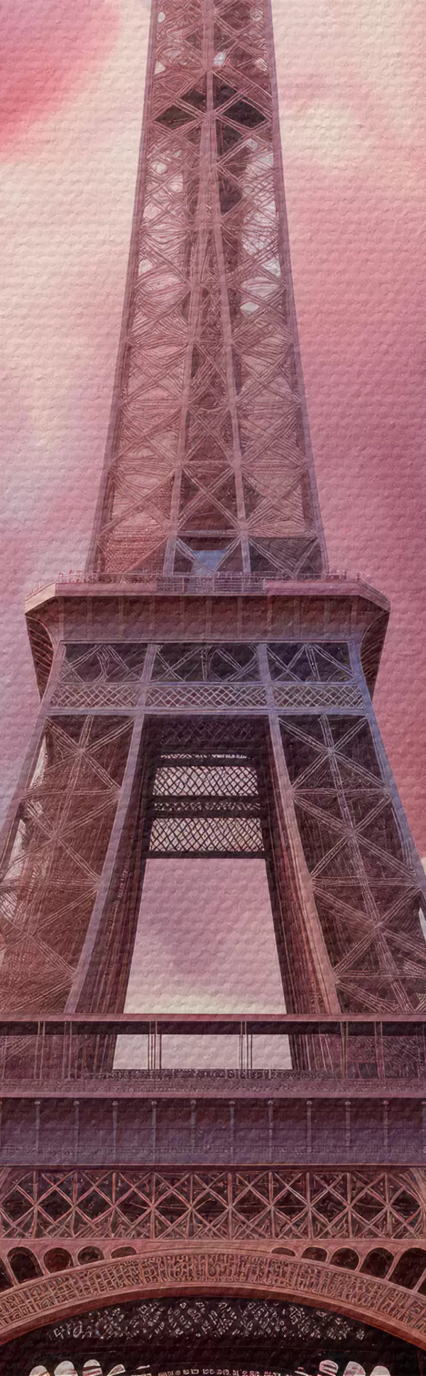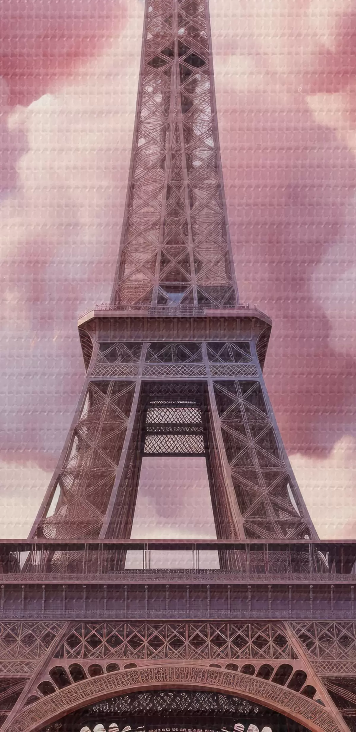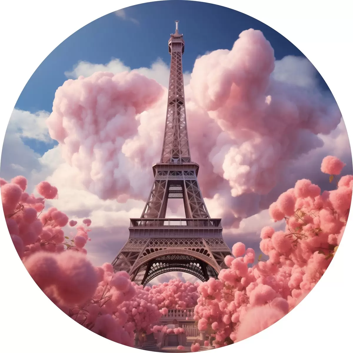 Picturi rotunde Turnul Eiffel în nori roz în stil fantasy Nr r45036