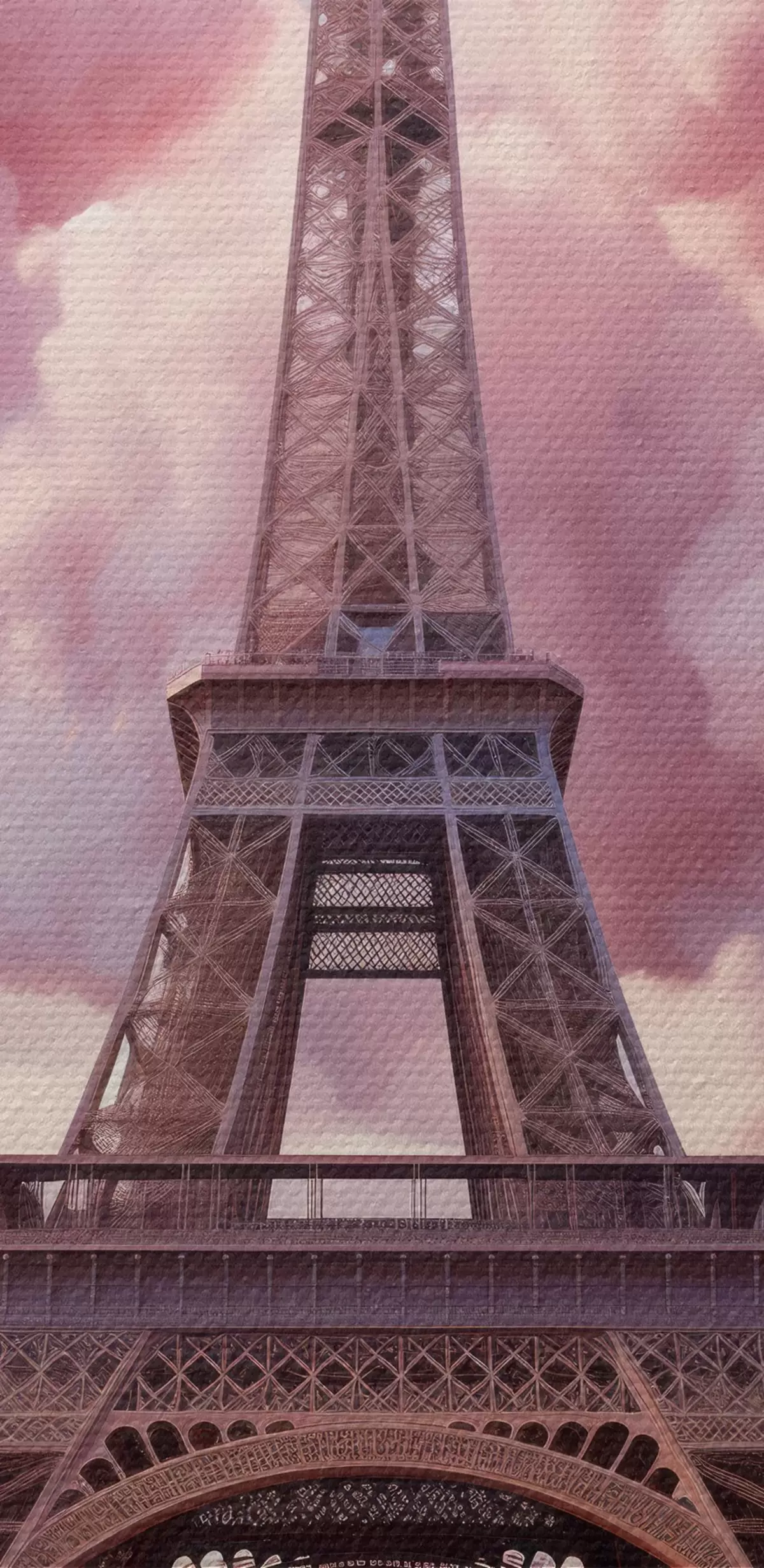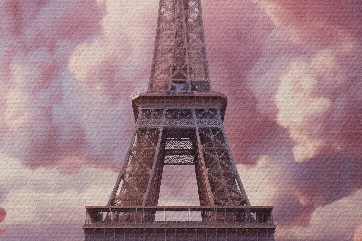 Picturi rotunde Turnul Eiffel în nori roz în stil fantasy r45036