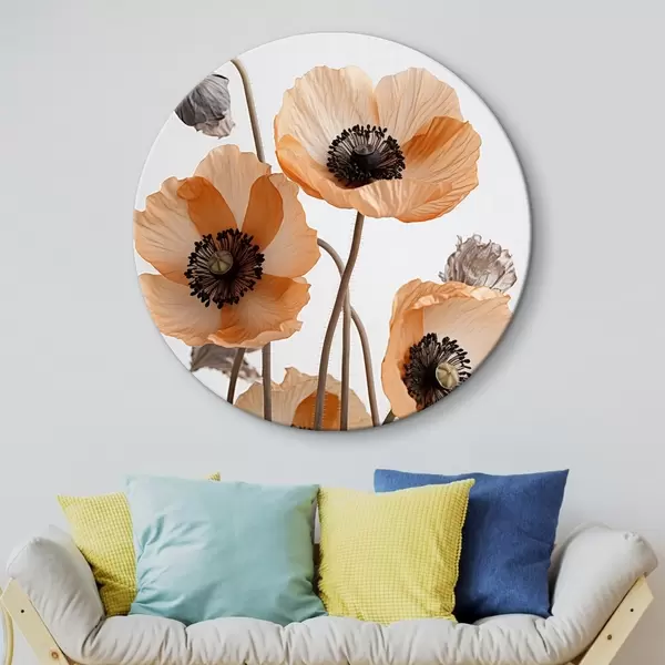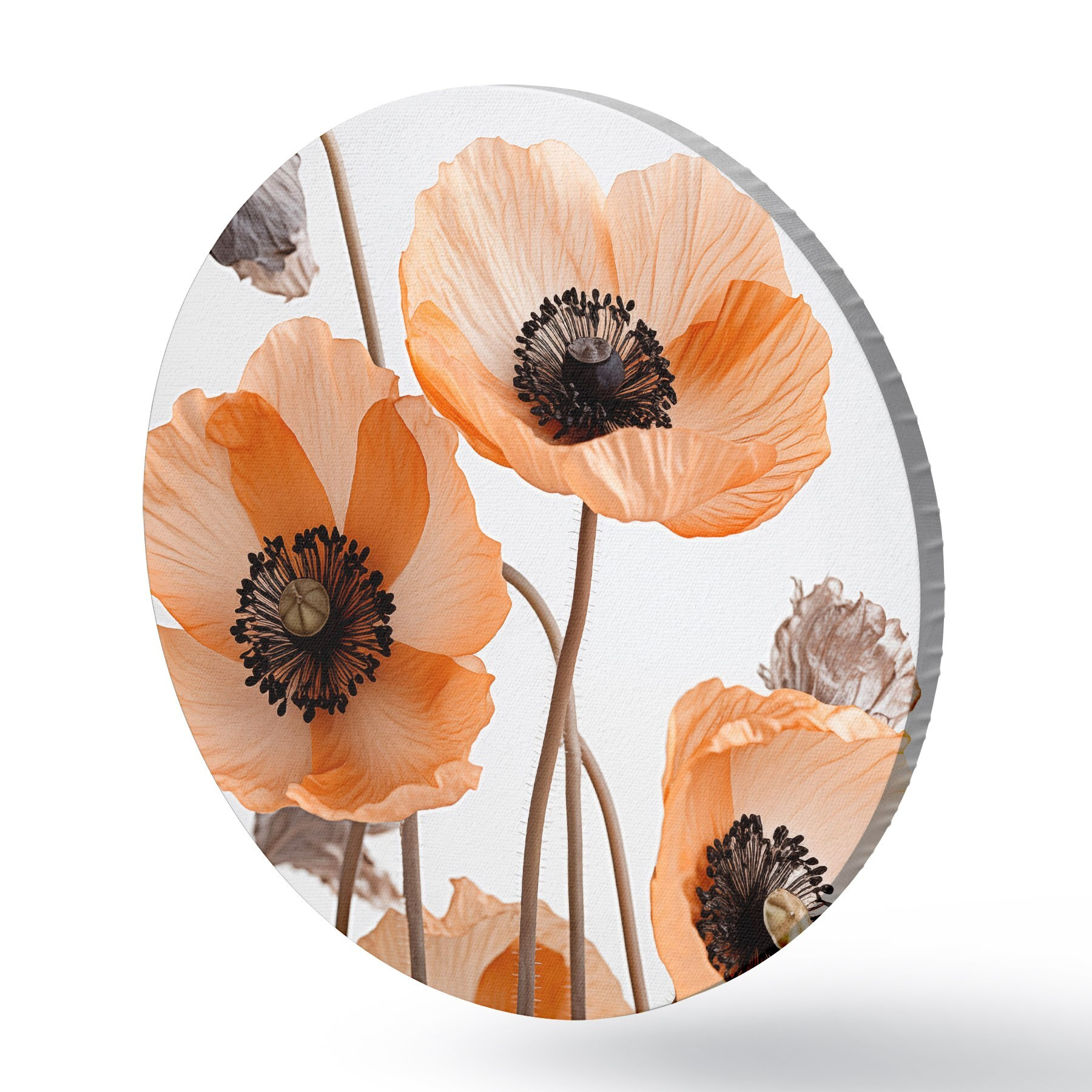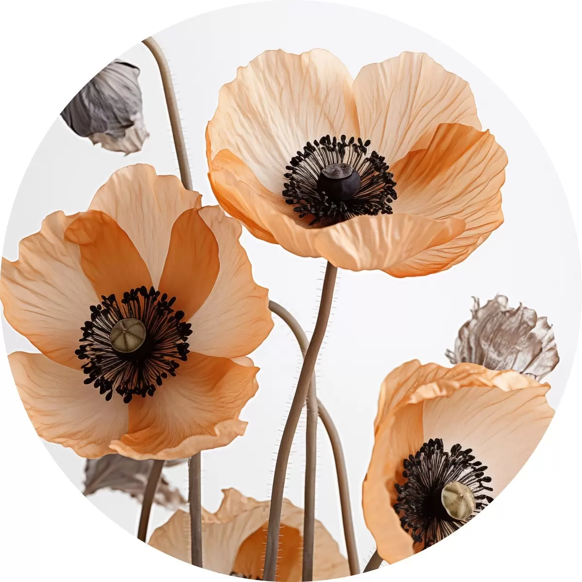 Picturi rotunde Mac portocaliu, flori uscate pe un fundal deschis, iluminare moale, petale delicate, aranjament floral Nr r45167