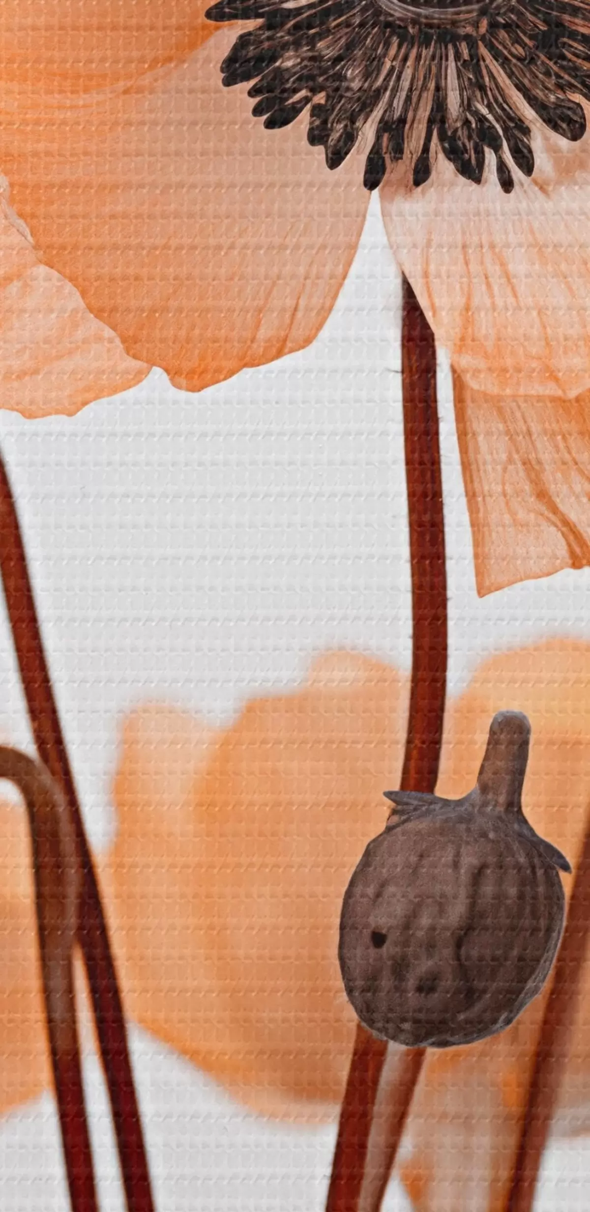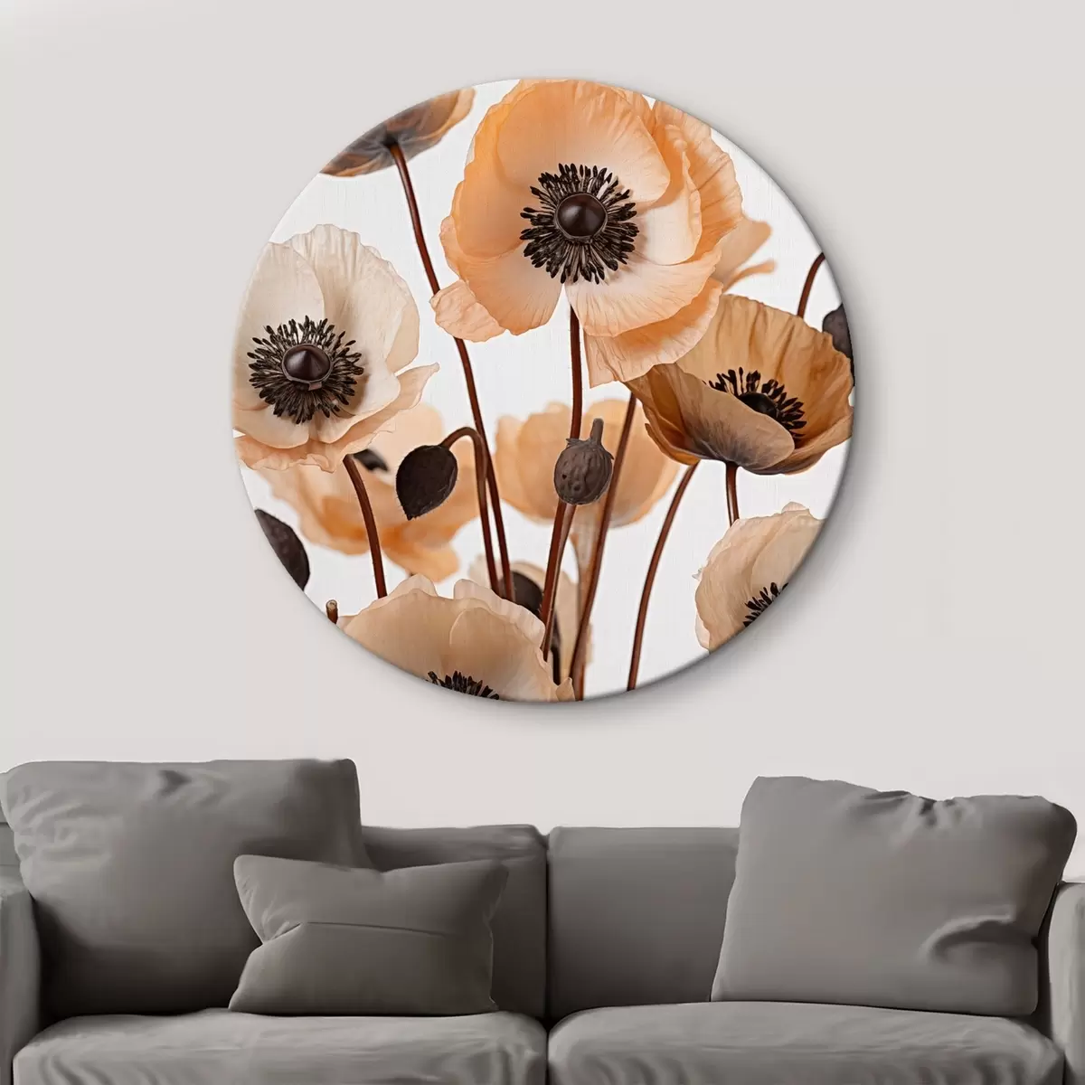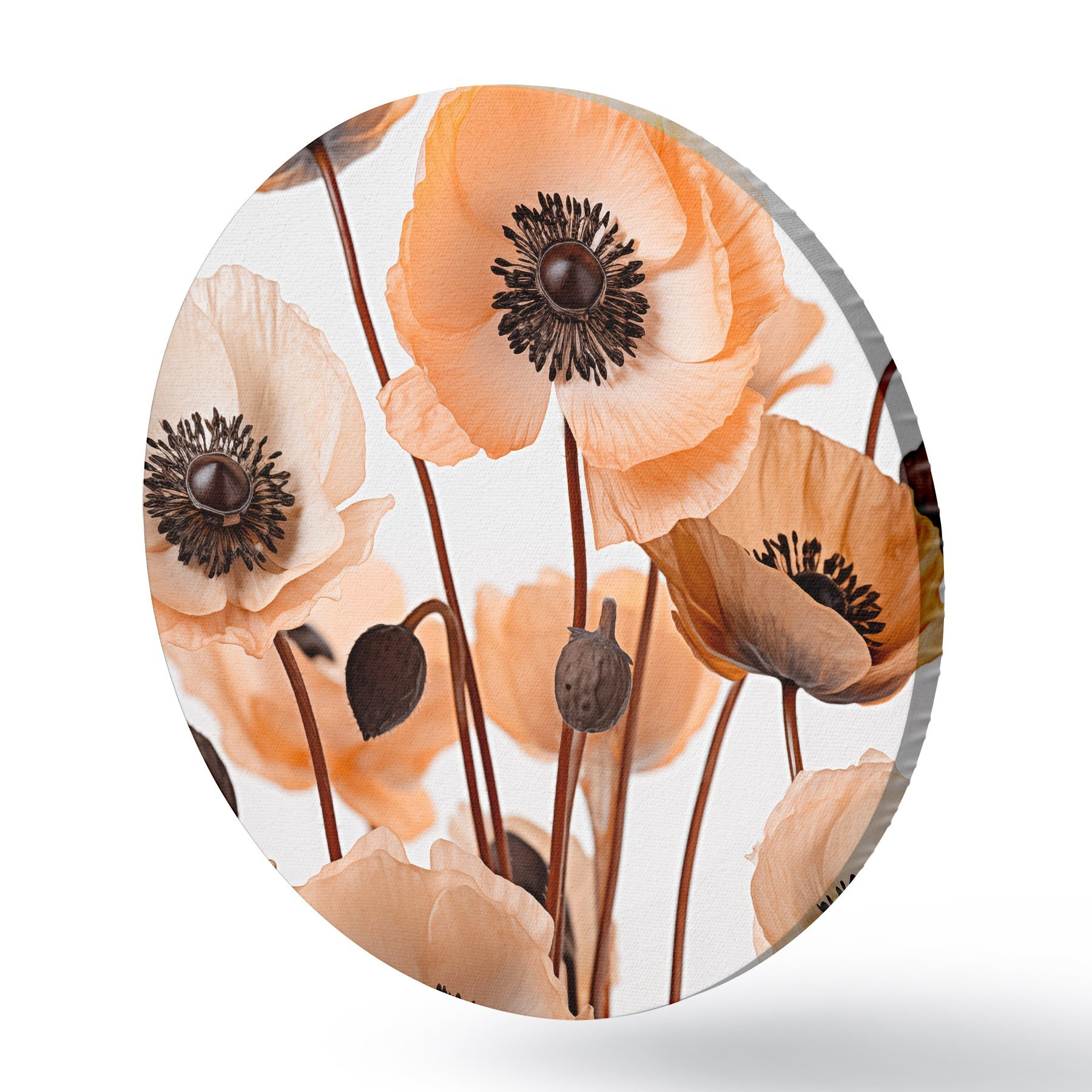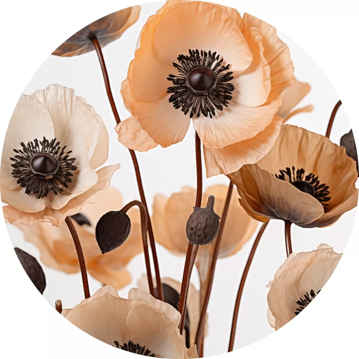 Picturi rotunde Mac portocaliu, flori uscate pe un fundal deschis, iluminare moale, petale delicate, aranjament floral r45168