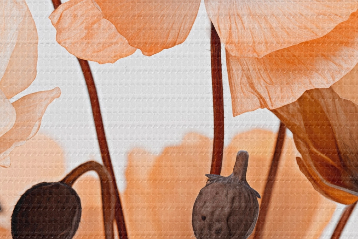 Picturi rotunde Mac portocaliu, flori uscate pe un fundal deschis, iluminare moale, petale delicate, aranjament floral Nr r45168