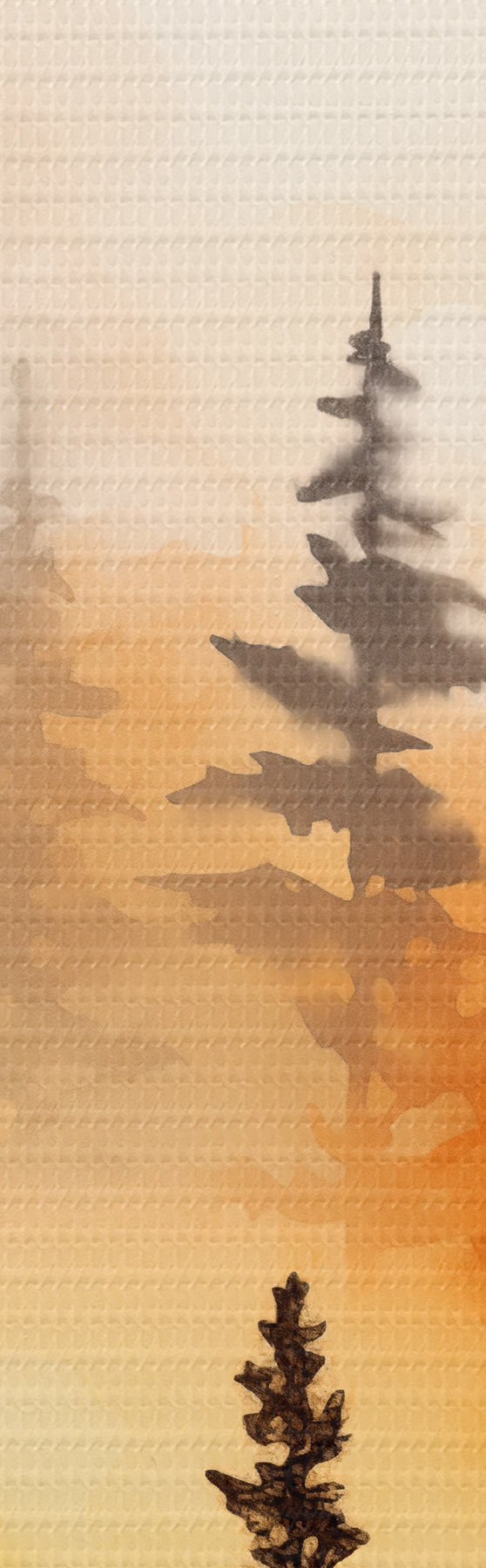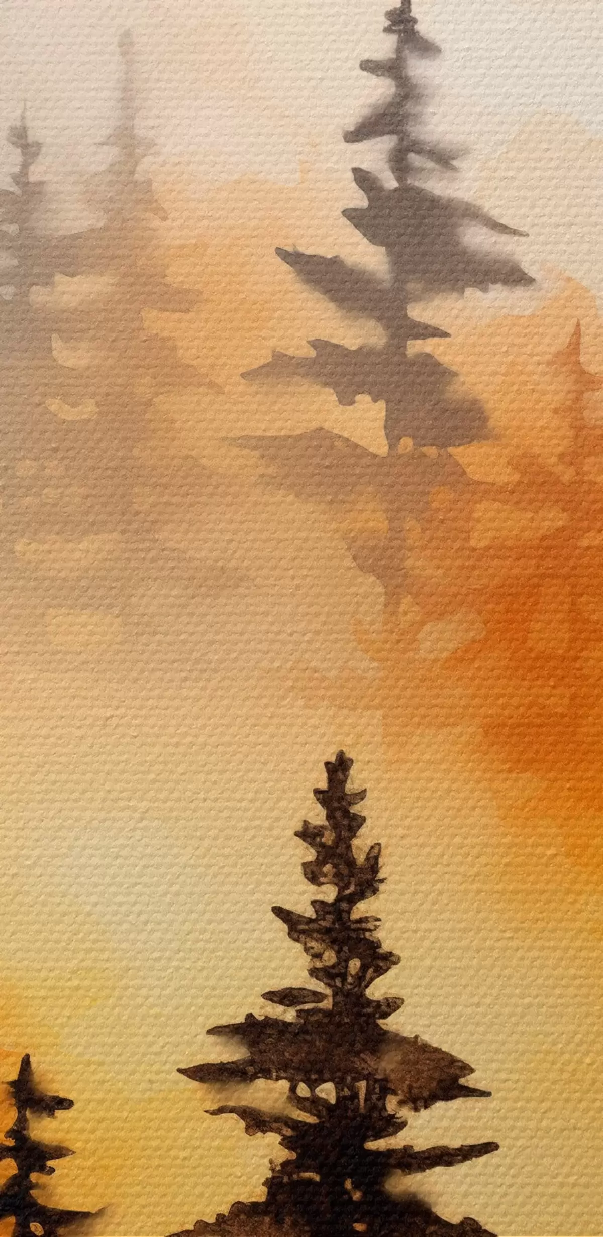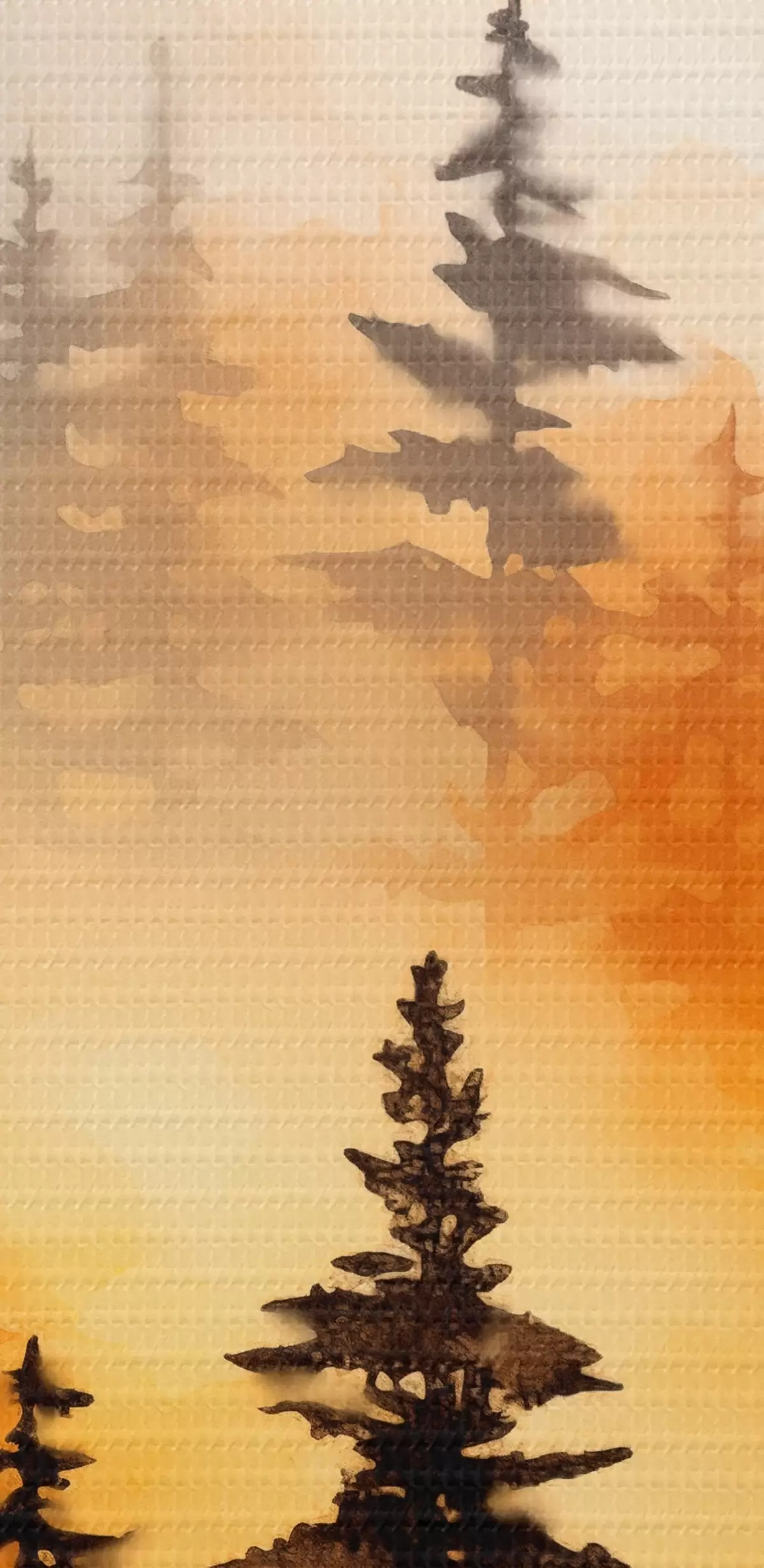 Picturi rotunde O imitație de pictură peisaj acuarelă a unei păduri cu pini înalți și munți în fundal Nr r45170